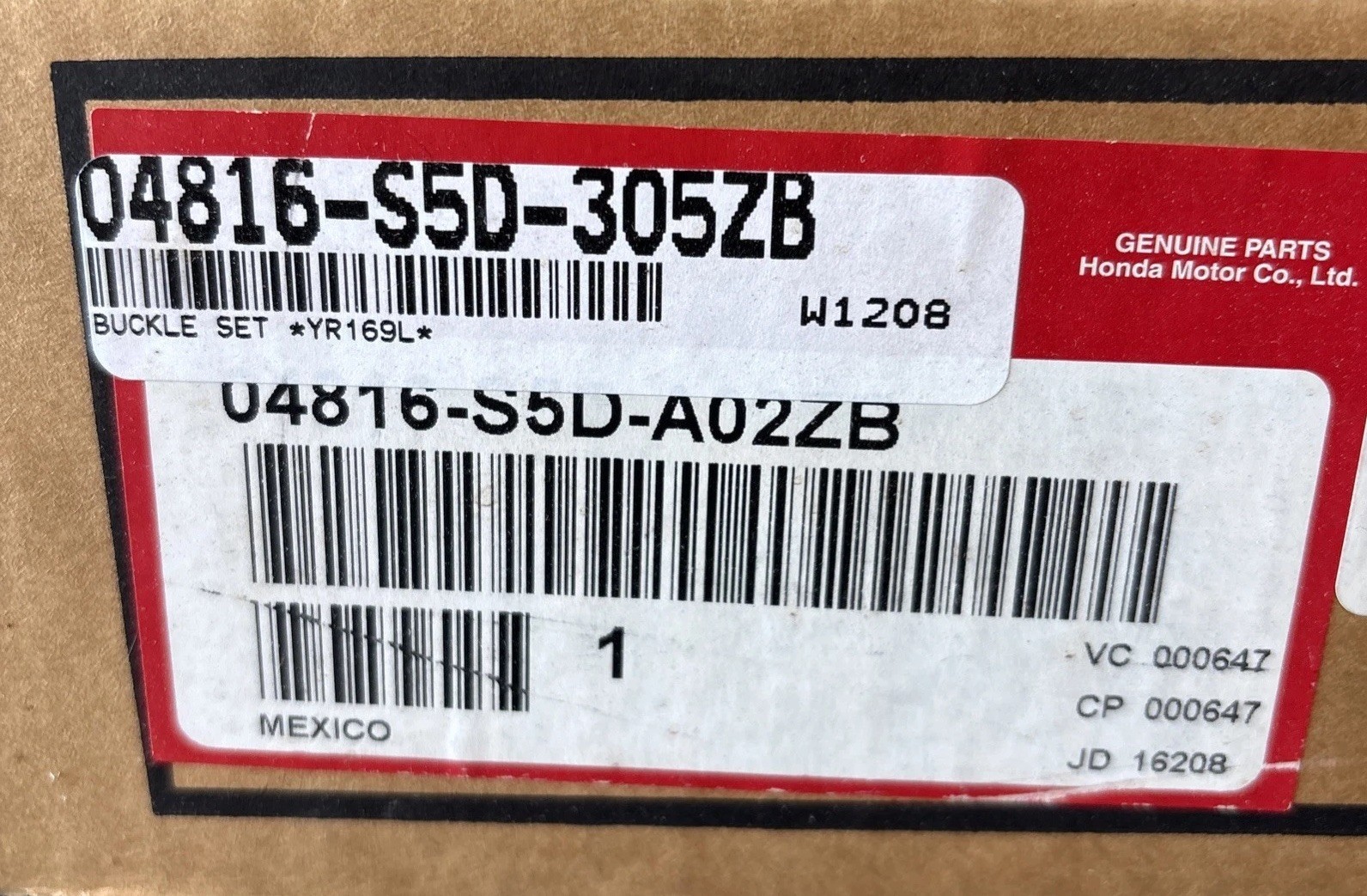 Honda 04816-S5D-305ZB BUCKLE SET *YR169L*