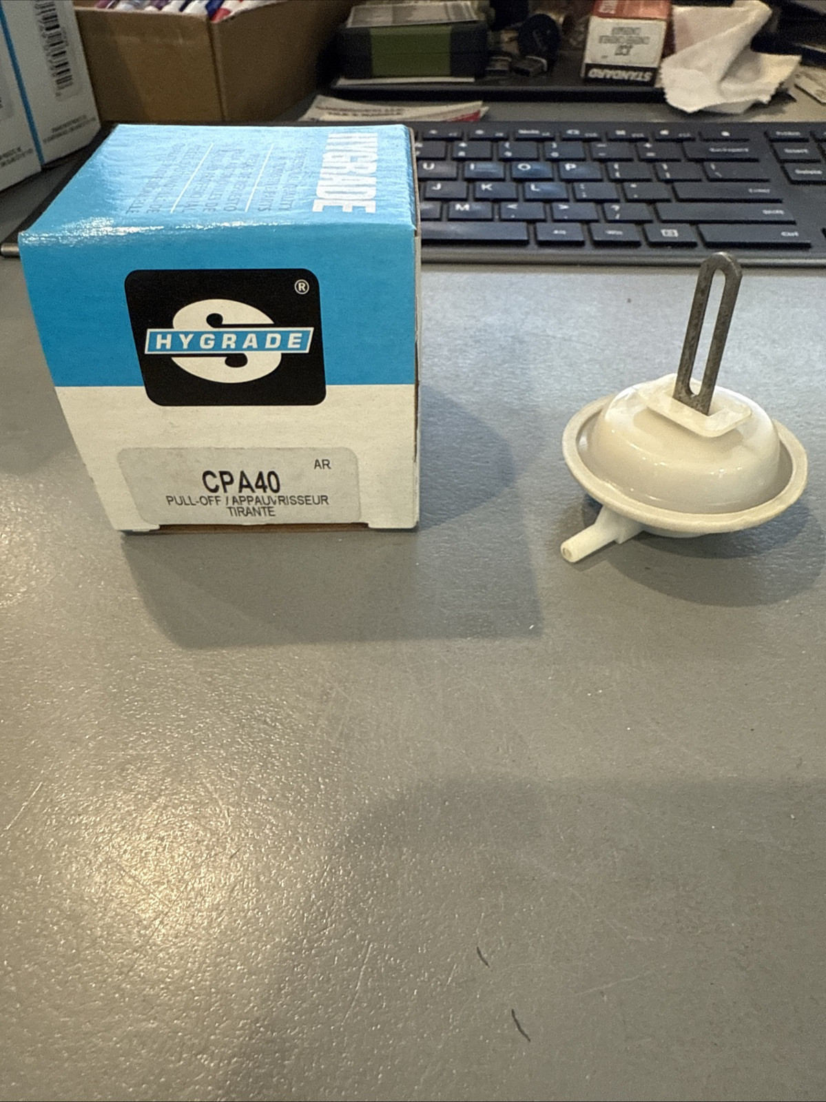The Hygrade CPA40 Standard Pull Off is a carburetor part designed for air and fuel delivery in car and truck engines. As a standard pull off, it is essential for regulating the flow of fuel in the carburetor system, ensuring proper engine performance. The Hygrade brand is known for producing quality automotive parts, making this pull off a reliable choice for maintaining and repairing carburetors in vehicles.