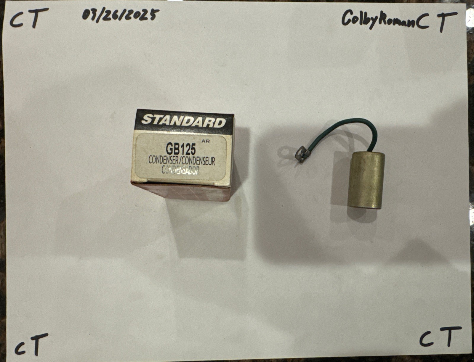 This ignition condenser is a high-quality replacement part for your car's ignition system. It is designed to fit seamlessly into your vehicle's engine bay and provide reliable performance. The condenser is made by Standard, a reputable brand in the automotive industry, and comes with a manufacturer part number of GB-125.