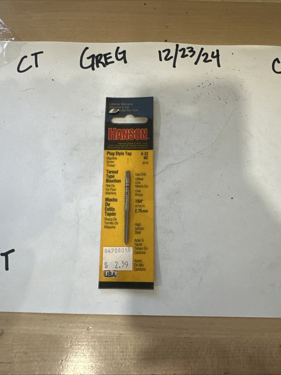 The Irwin Hanson High Carbon Steel SAE Plug Tap 6-32 is a durable and reliable hand tool designed for creating internal threads in materials like metal or plastic. Made from high carbon steel, this plug tap from IRWIN is specifically sized at 6-32 and comes as a single piece, making it convenient for various threading tasks. The IRWIN brand is known for its quality tools, ensuring that this plug tap is built to last and provide precise threading results in your workshop or DIY projects.