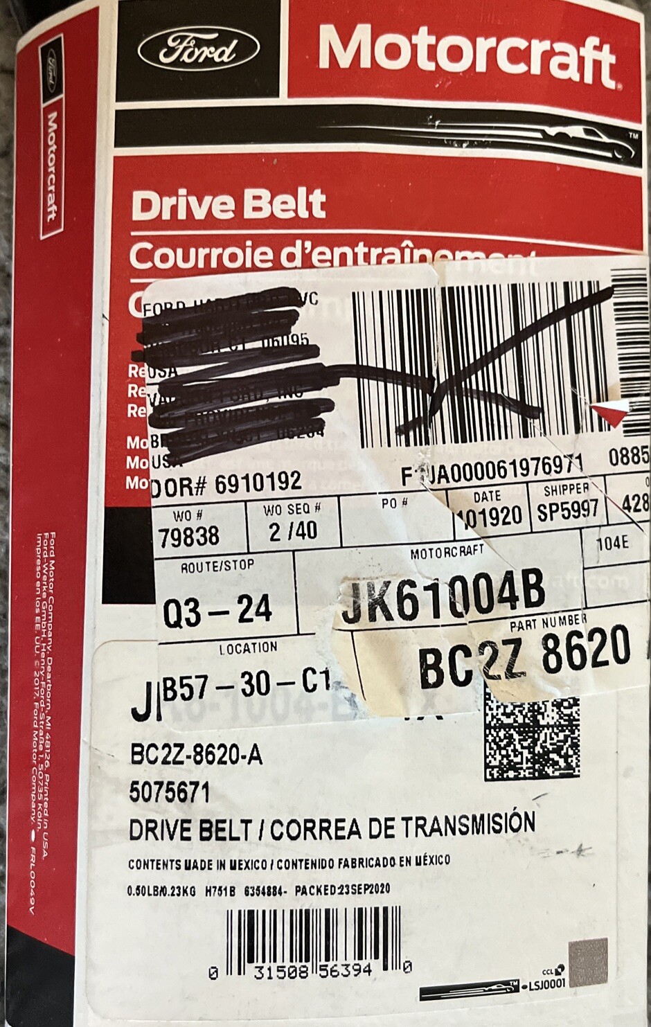 JK6-1004-B Motorcraft Serpentine Belt BC2Z-8620-A