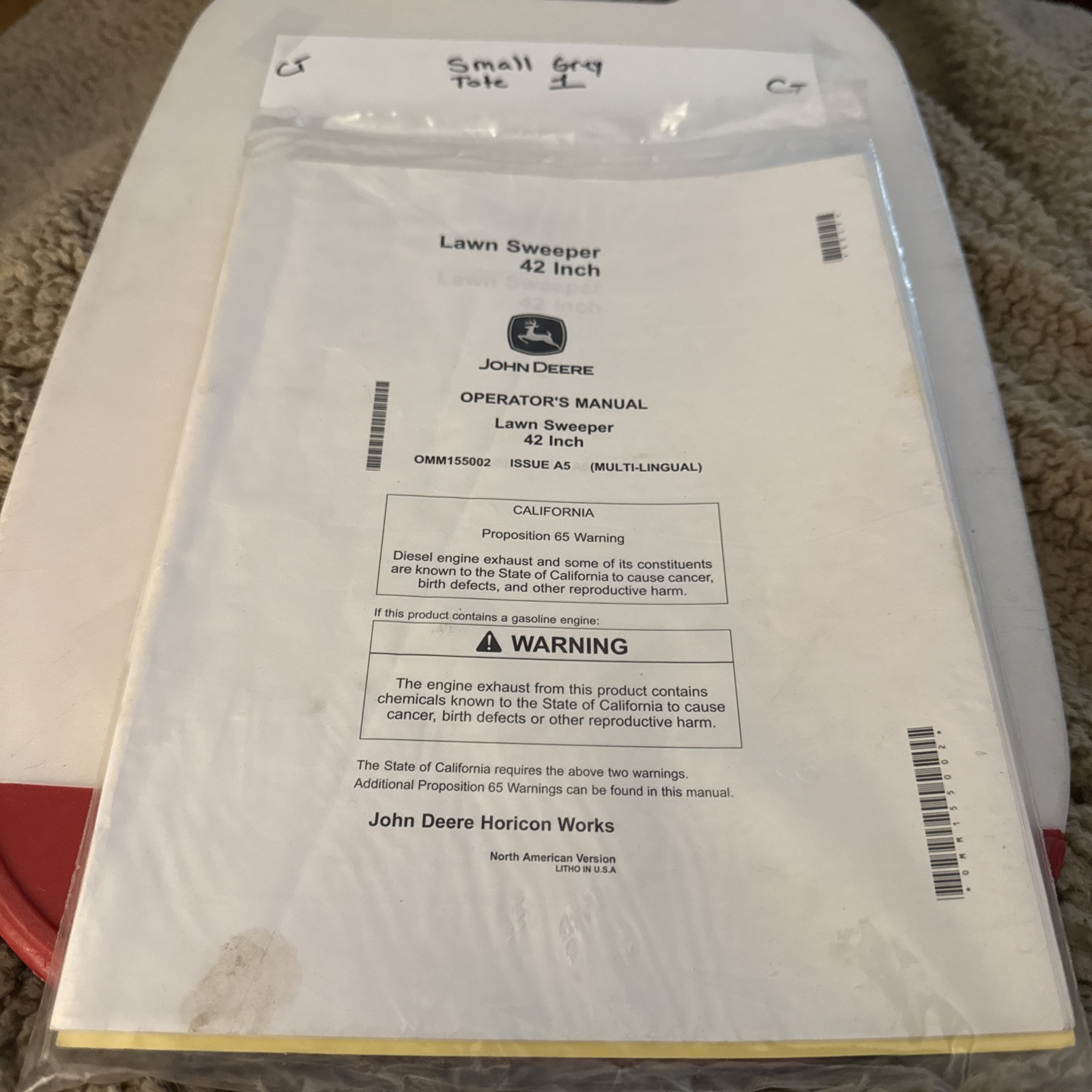 The product is an operator's manual for a John Deere lawn sweeper with a 42" width, specifically identified by the part number OMM155002 and issue A4. The manual is intended to provide guidance and instructions for the proper operation and maintenance of this particular model of John Deere lawn sweeper. Given the brand association with John Deere and the theme of agriculture, it is likely that this manual is designed for use in agricultural settings to assist users in effectively utilizing and caring for their lawn sweeper.