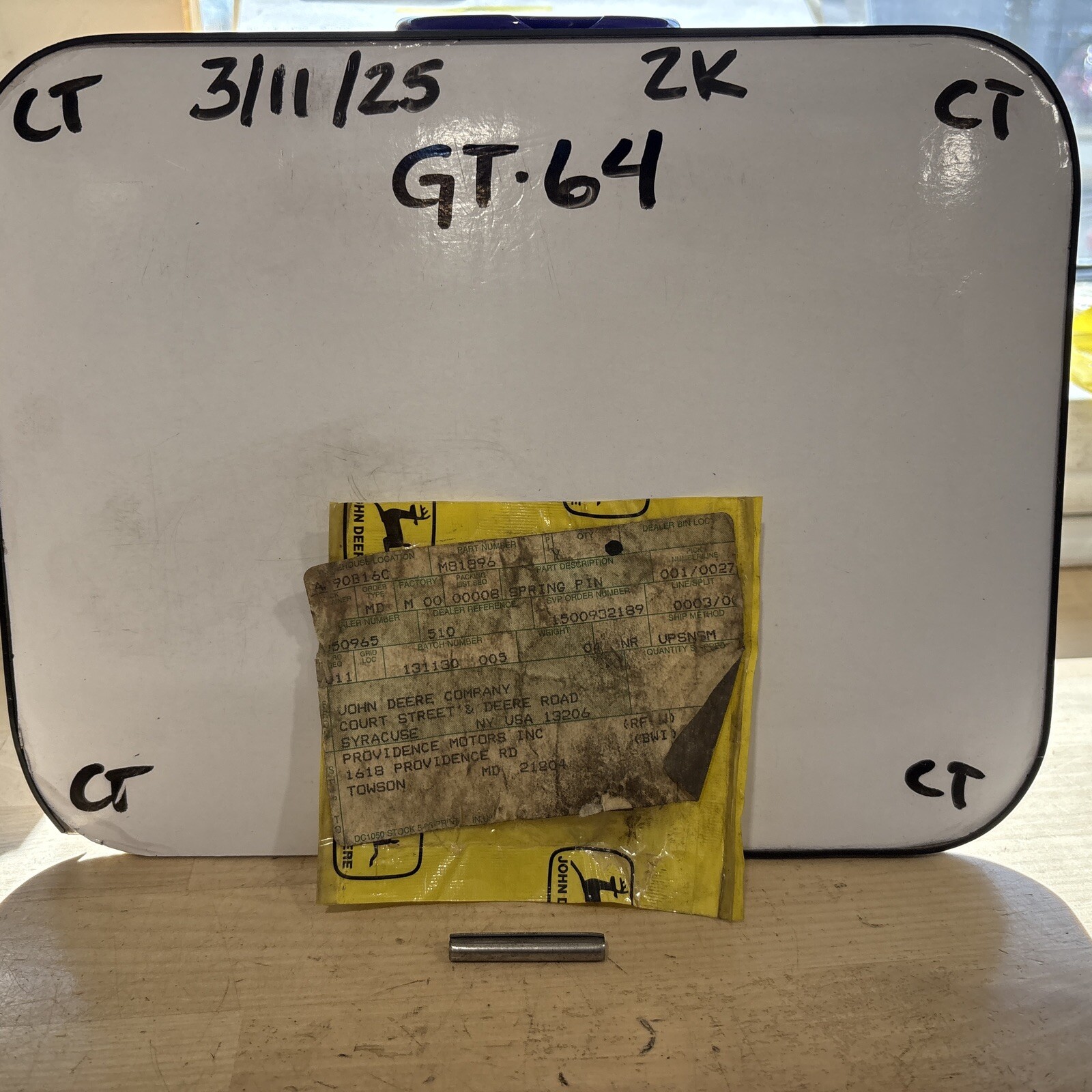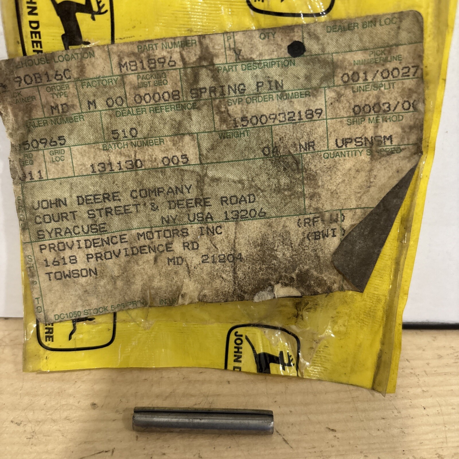 The product is a John Deere Spring Pin, specifically the model M81896. It is designed as a replacement part for certain John Deere lawn mowers. The spring pin is used to secure and connect components within the mower's mechanism. As the product specifies "1" in the Number in Pack aspect, it indicates that this item comes individually, making it crucial for customers to ensure they purchase the correct quantity needed for their repair or maintenance needs. This John Deere Spring Pin M81896 is an essential component for maintaining the functionality of compatible lawn mowers.