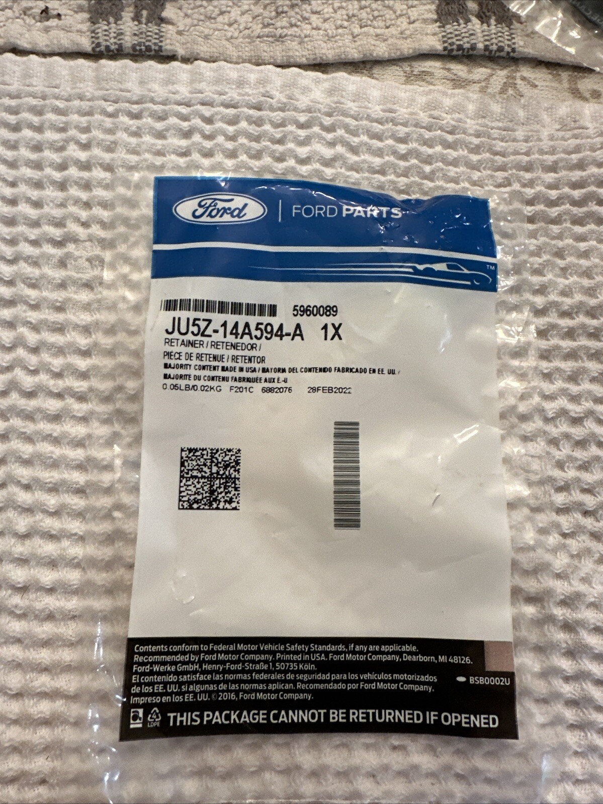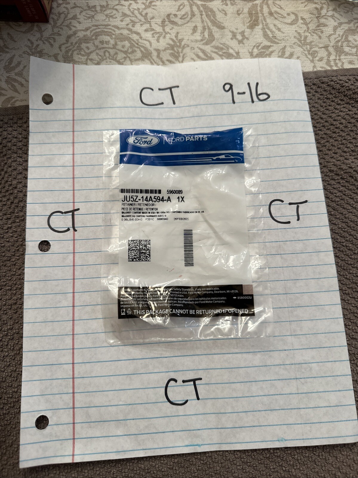 This retainer is a genuine OEM part for Ford vehicles. It is designed to securely hold electrical components in place and is made with high-quality materials to ensure durability. The manufacturer part number for this retainer is JU5Z14A594A and it is compatible with various Ford models. Please note that this item is sold as-is and all sales are final. It is recommended that you consult your owner's manual or mechanic if you are unsure about compatibility.