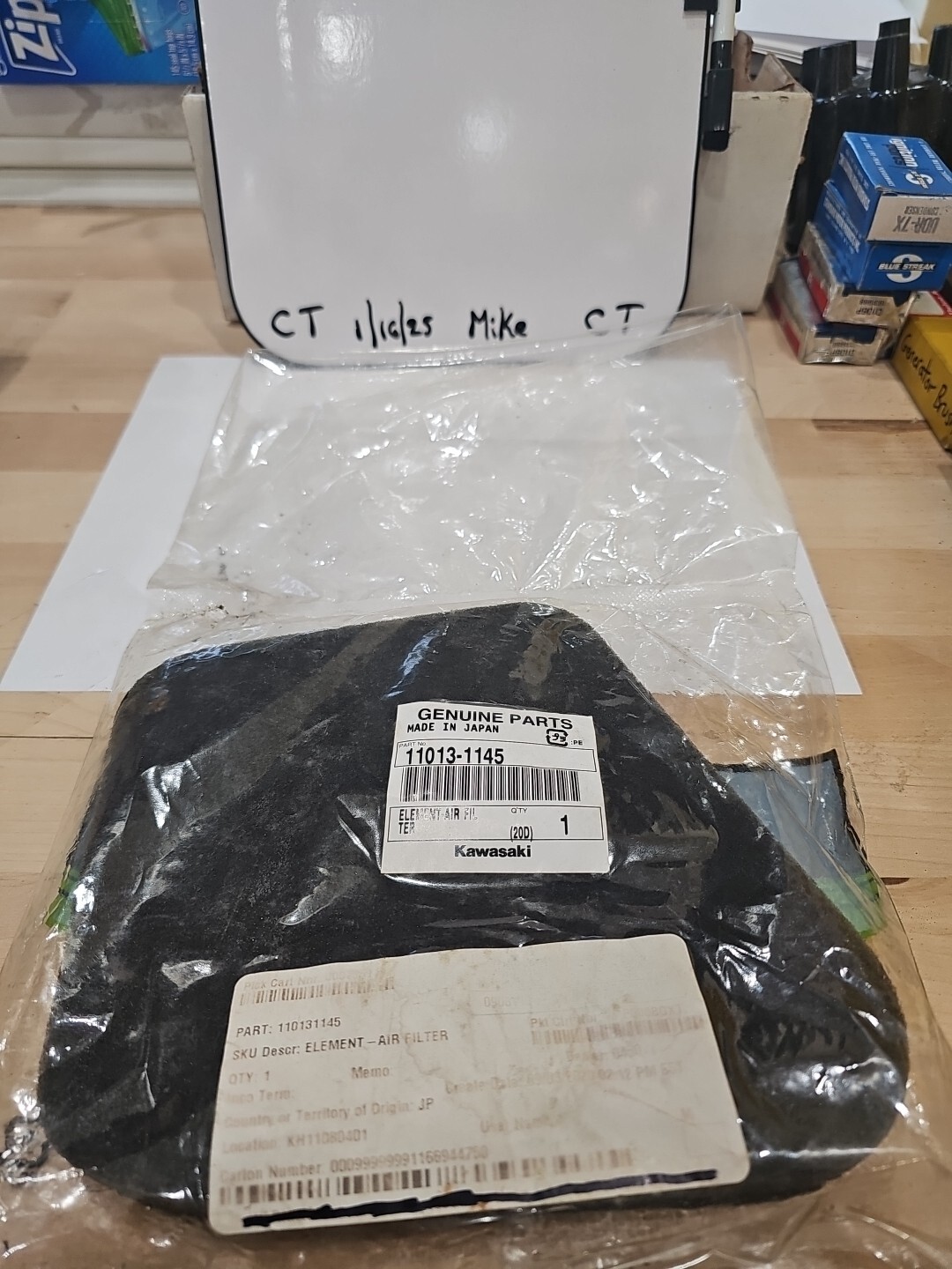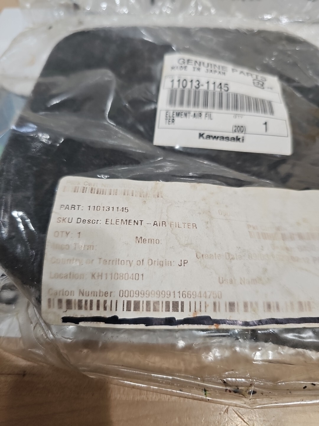 The product is a Kawasaki Genuine Parts air filter with a manufacturer part number of 11013-1145. This air filter is designed specifically for Kawasaki motorcycles and scooters to ensure optimal air intake and fuel delivery. It is an authentic replacement part that guarantees a proper fit and function for the specified vehicles. The Kawasaki Genuine Parts 11013-1145 Element Air Filter is a reliable choice for maintaining the performance and longevity of your motorcycle or scooter.