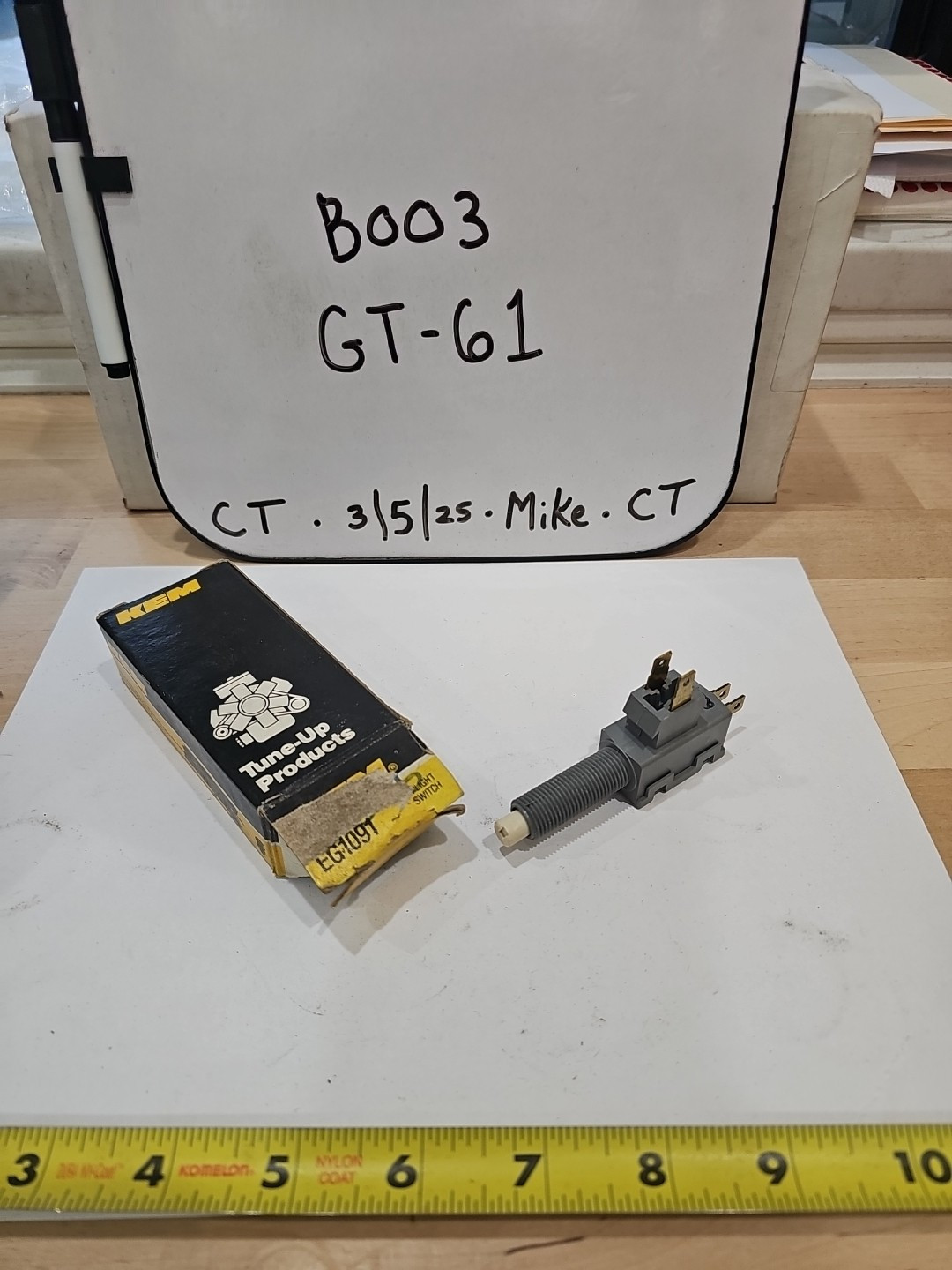 This is a high-quality stop light switch manufactured by KEM with the part number EG1091, suitable for 64-90 Buick, Chevy, GMC, and Cadillac models. It is designed to ensure the proper function of your vehicle’s braking system by accurately detecting when the brake pedal is pressed and signaling the stop lamp to illuminate. This switch is made to meet or exceed OEM specifications and is a reliable replacement part for your car or truck.