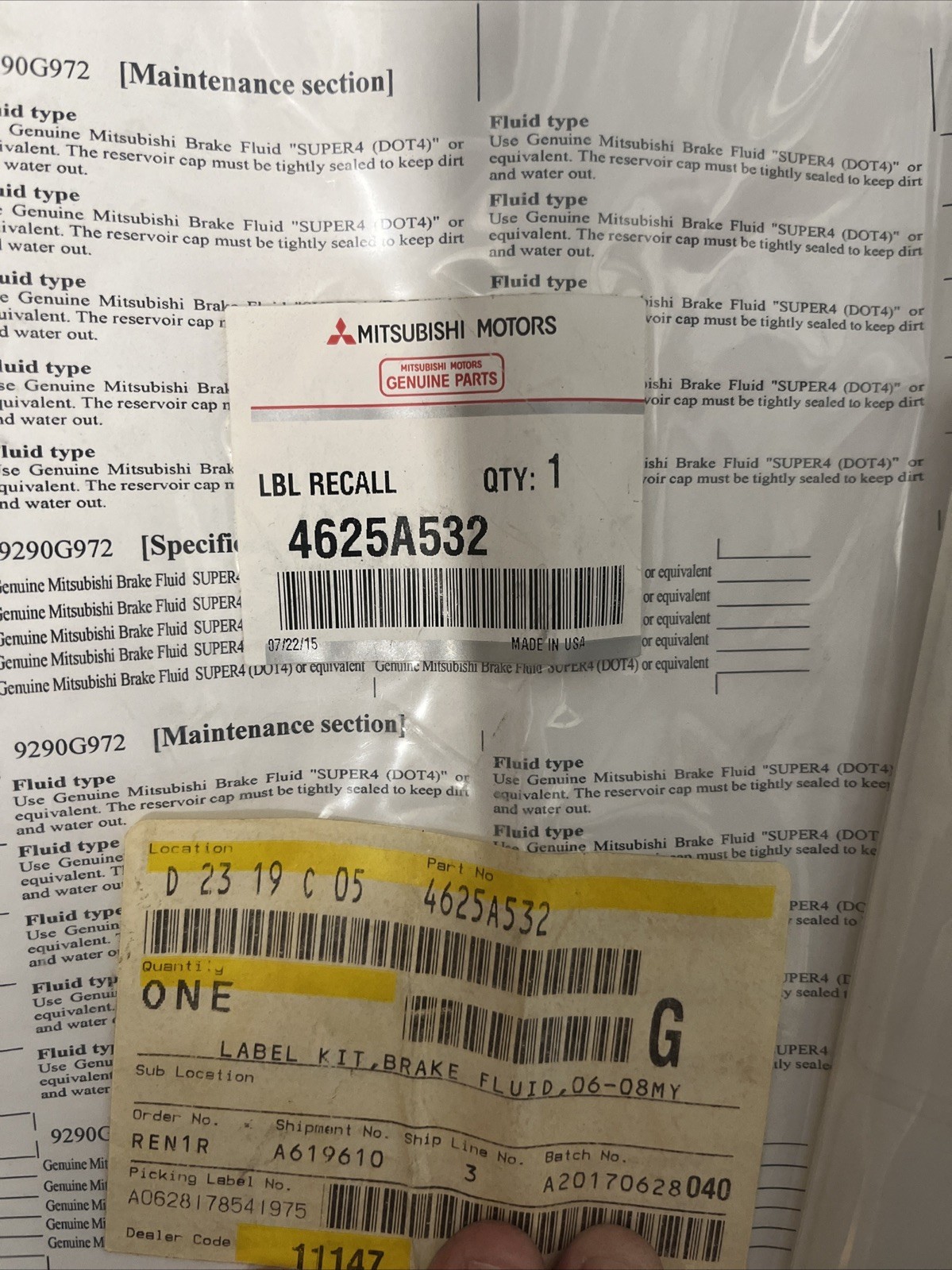 Label Kit, Brake Fluid, 0 - Mitsubishi (4625A532) quantity