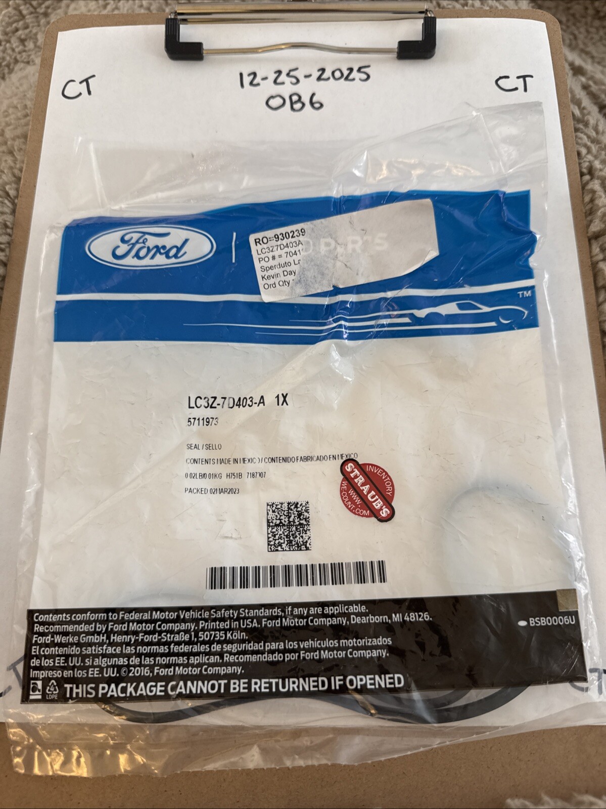 The product is a genuine OEM "LC3Z7D403A" SEAL manufactured by Ford. It is a part with electrical components, making it non-returnable per the return policy. The item is specifically designed for use in cars and trucks, falling under the category of car and truck parts and accessories. The manufacturer part number "LC3Z7D403A" uniquely identifies this authentic Ford product, ensuring a proper fit and functionality in compatible vehicles.