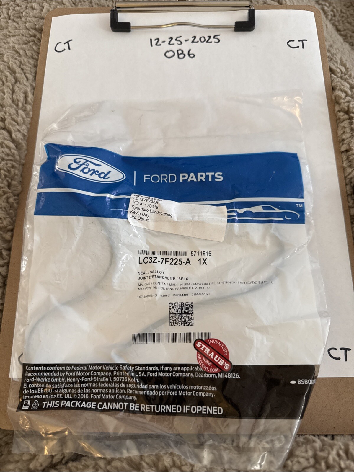 The product is a genuine OEM Ford SEAL with the manufacturer part number LC3Z7F225A. It is designed for use in vehicles and falls under the category of car and truck parts and accessories. The return policy states that there are no returns for parts with electrical components, indicating that this SEAL likely contains electrical components. This product is specifically branded as Ford, ensuring compatibility and quality assurance for Ford vehicles.