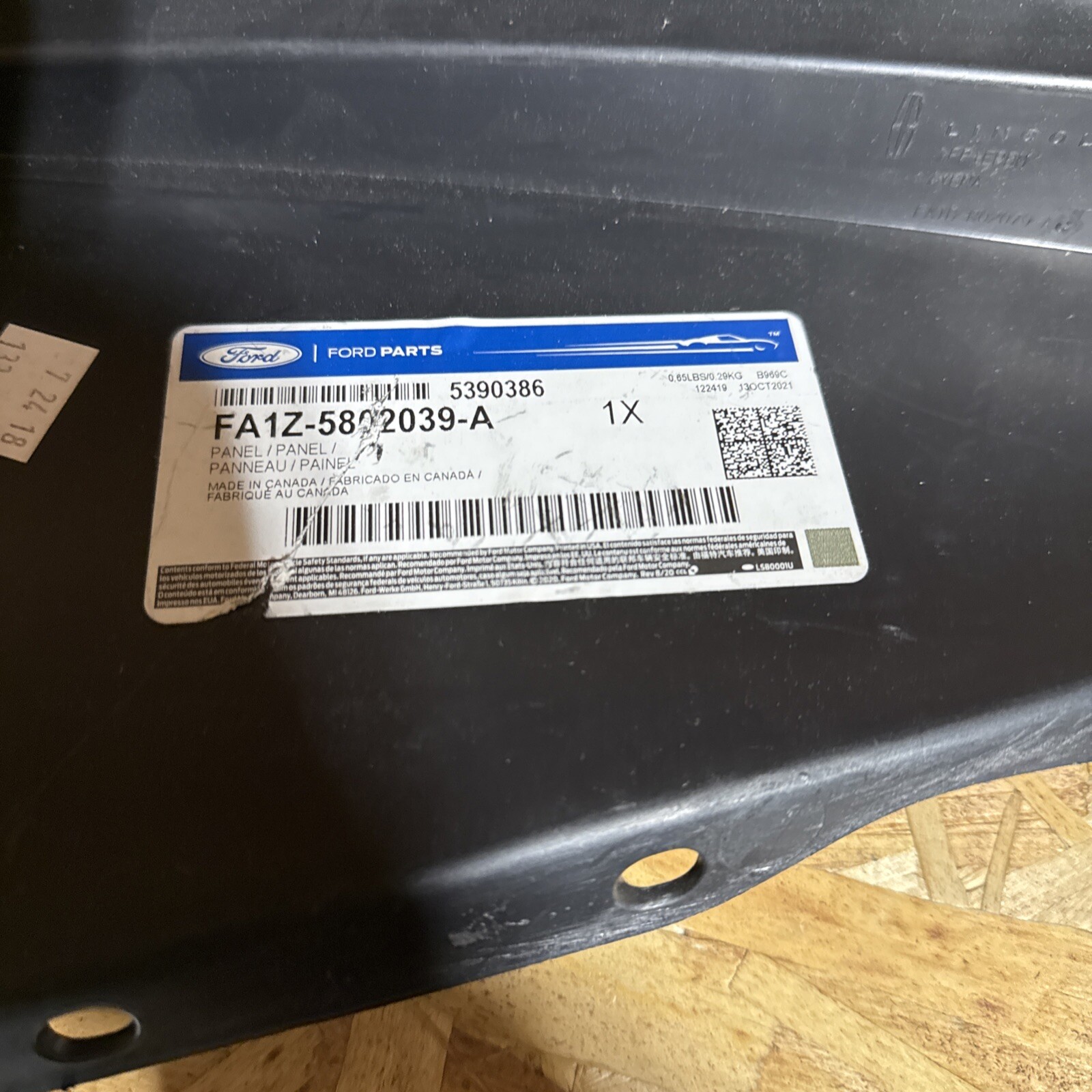 The product is a genuine OEM left side Closure Panel for a Lincoln MKX from 2016-2018, made by FORD. It is a direct replacement fender component with the manufacturer part number FA1Z5802039A. This Closure Panel is designed specifically for the MKX model and is a high-quality, authentic part for a perfect fit and function. It is an essential body hardware item for the exterior of the vehicle, ensuring a seamless and original appearance when installed.