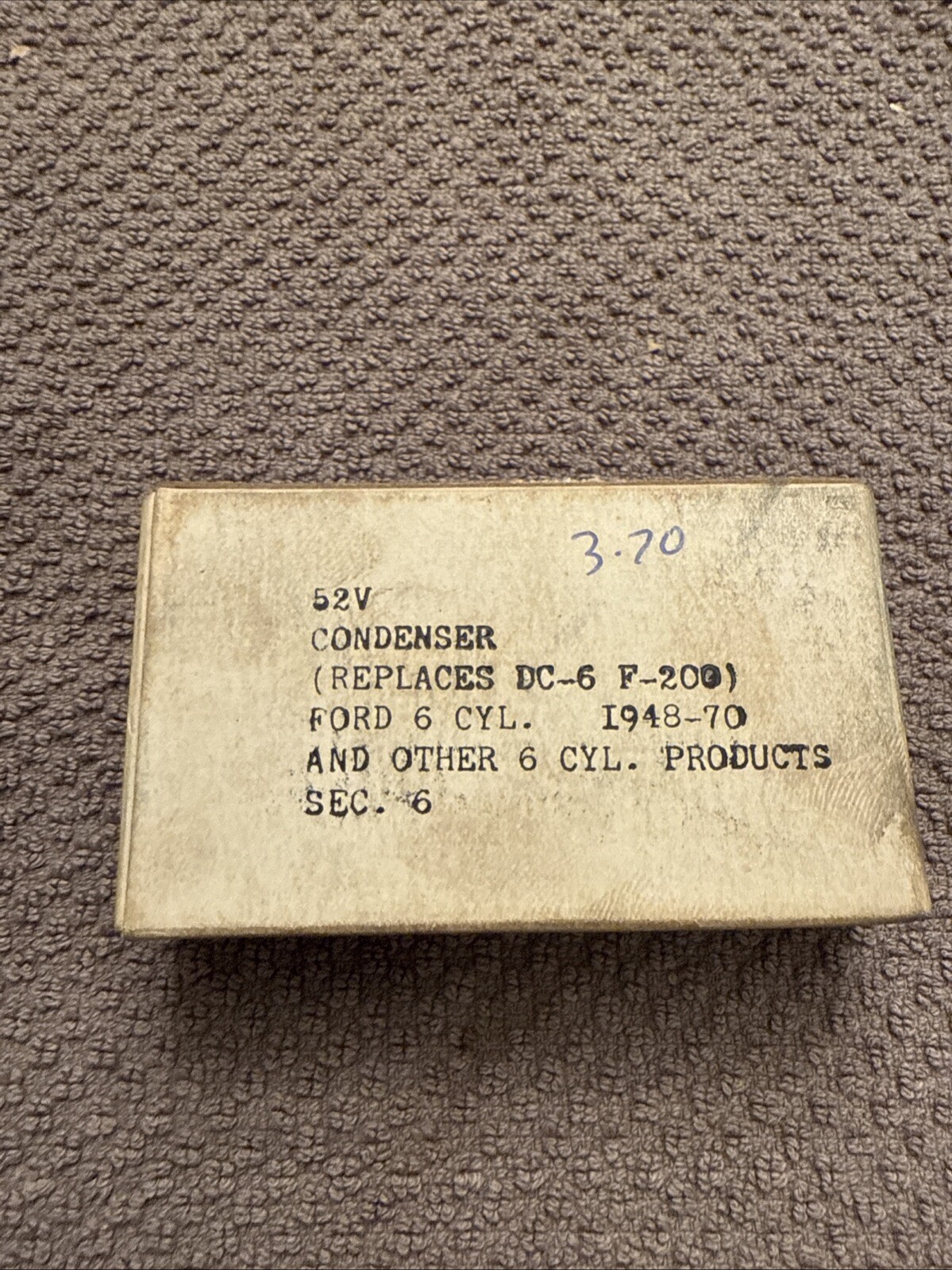 This lot includes one or more Esda 52 V condensers, suitable for use with Ford vehicles from 1948 to 1970. These vintage parts are perfect for collectors or those seeking to restore their car to its original state. The brand of the condensers is Ford, ensuring quality and compatibility with the intended vehicle.