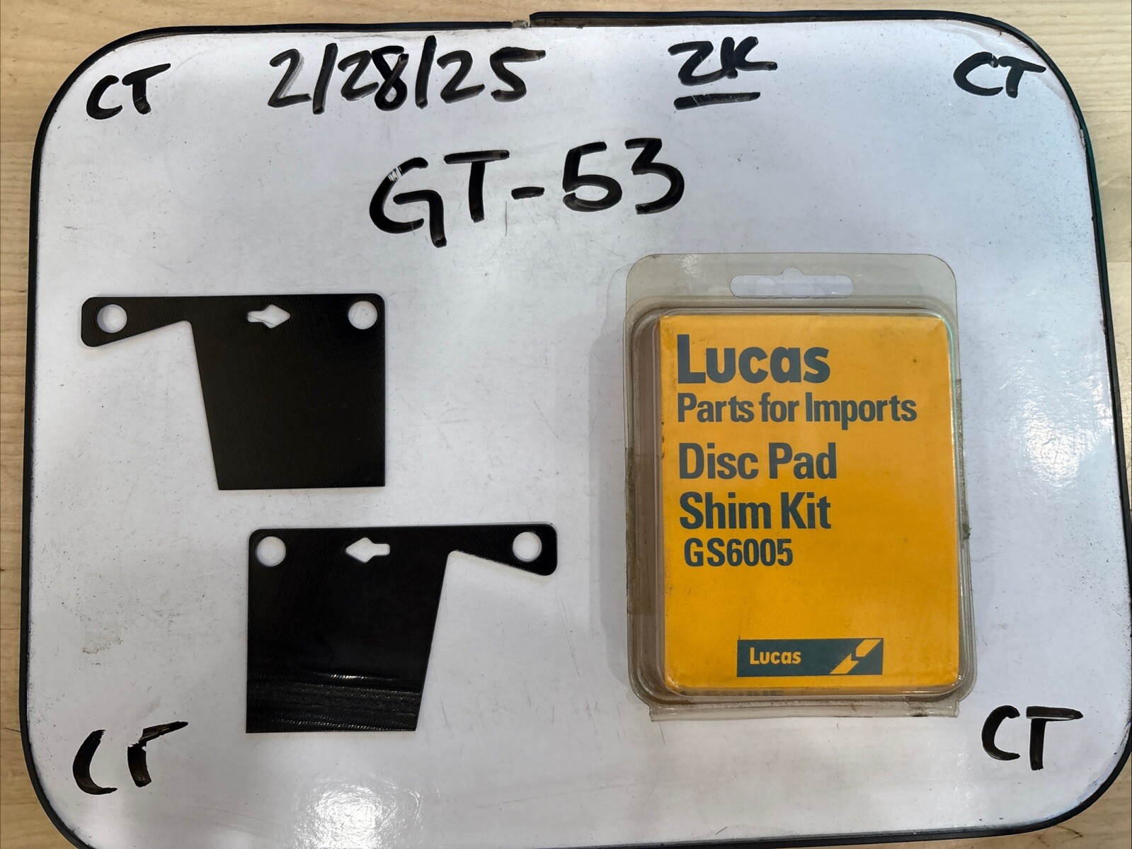 The product is a Lucas brand Disc Pad Shim Kit with the manufacturer part number GS6005. This kit includes shims designed for brake pads, providing a solution for brake pad noise and vibration issues. The Lucas brand is known for producing high-quality automotive parts, making this kit a reliable option for brake pad maintenance and ensuring smooth and quiet brake performance.