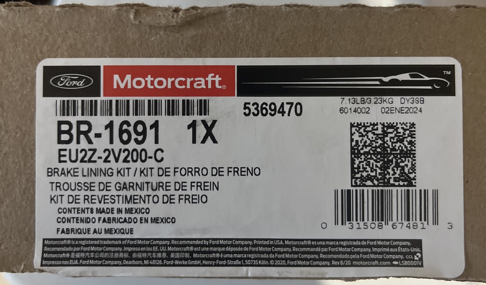 Motorcraft BR-1691 / Ford EU2Z-2V200-C Brake Lining Kit