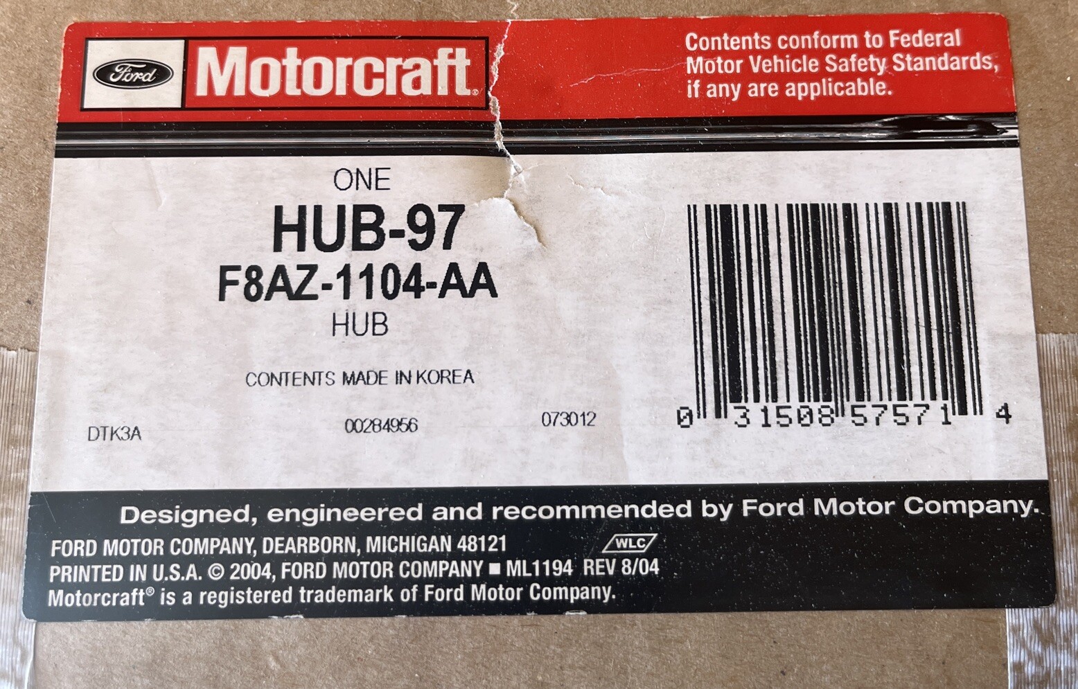 MOTORCRAFT Genuine Ford Hub Assembly – Wheel HUB-97/ F8AZ-1104-AA