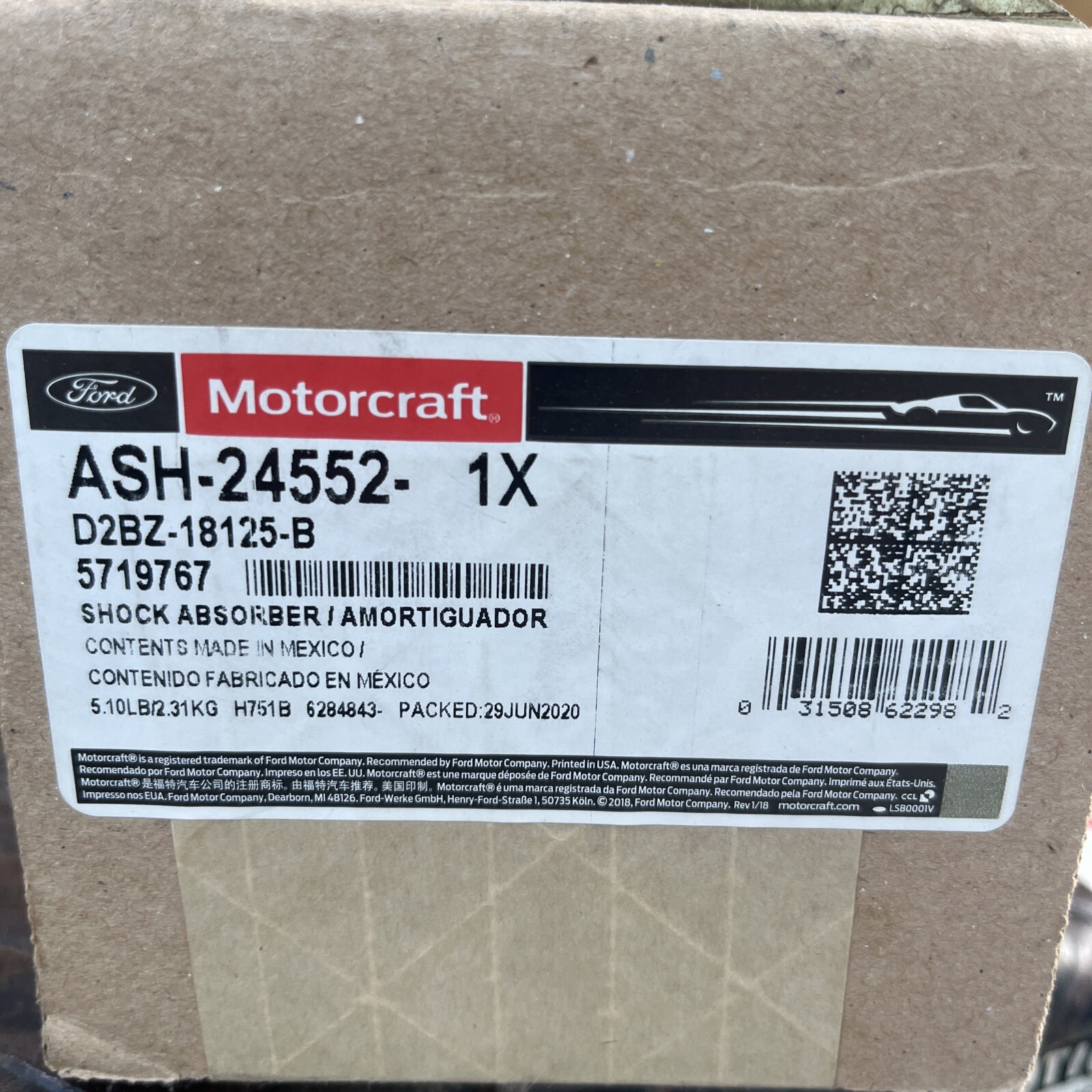 Motorcraft Shock Absorber Rear ASH-24552 / D2BZ-18125-B Ford Fiesta 2014-2019