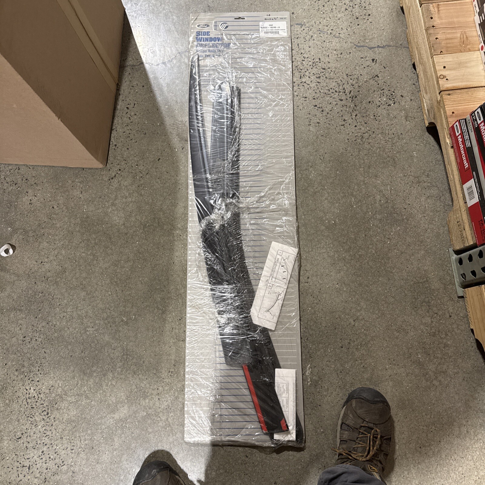 The product is a brand-new Ford OEM window deflector with the part number VJ5DZ-18246-A. This window deflector is designed to provide protection from wind, bugs, and other debris while driving. It is a genuine Ford accessory, ensuring a proper fit and compatibility with Ford vehicles. The window deflector adds both functionality and style to the vehicle, enhancing its appearance and offering practical benefits for the driver and passengers.