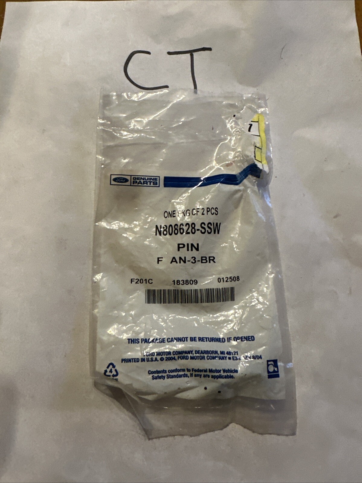 In addition to the pin, this lot includes another Ford retaining pin with the manufacturer part number N808628-SSW. This is a perfect addition to the collection or a great gift for someone who loves Ford products. Don't miss out on the opportunity to own these genuine Ford retaining pins.