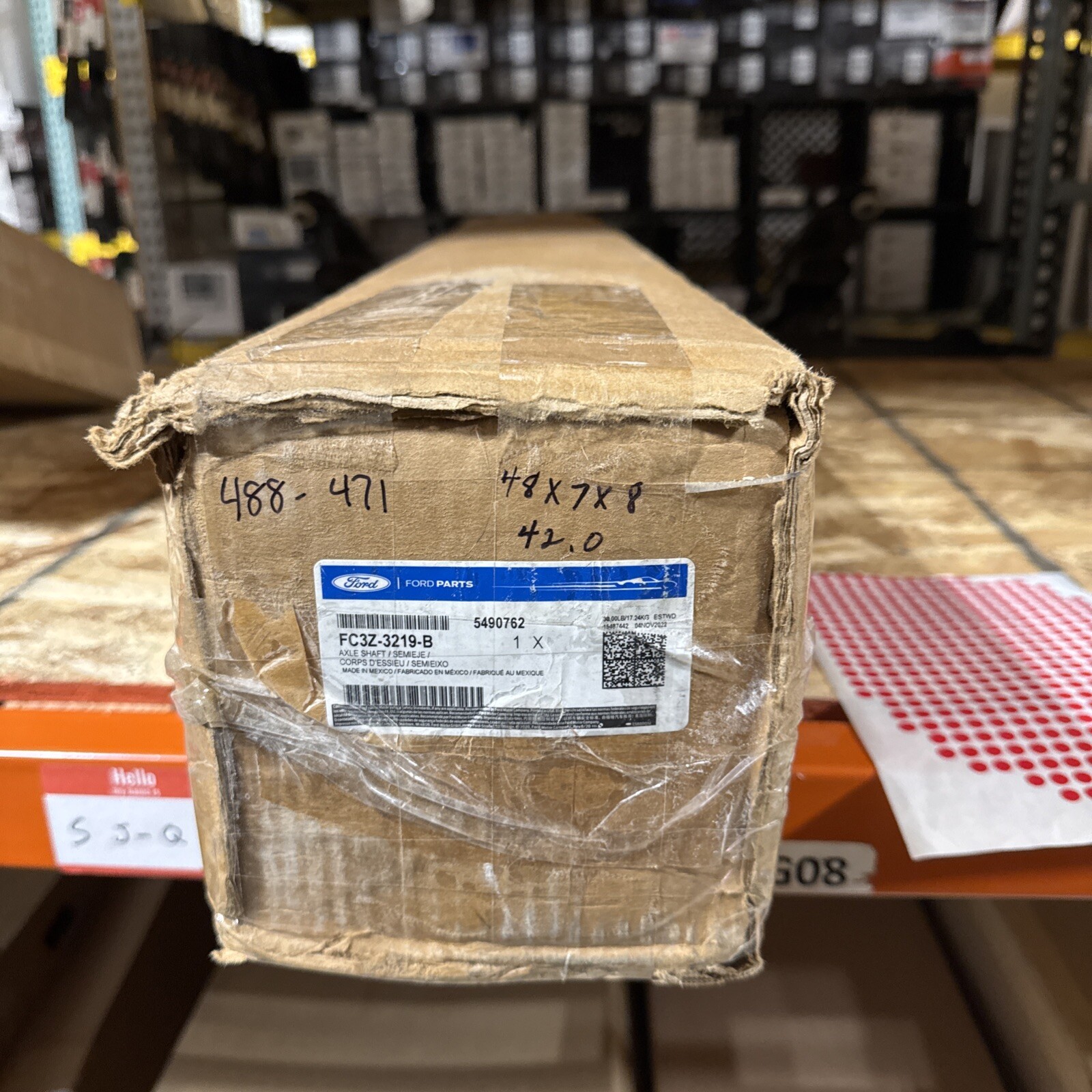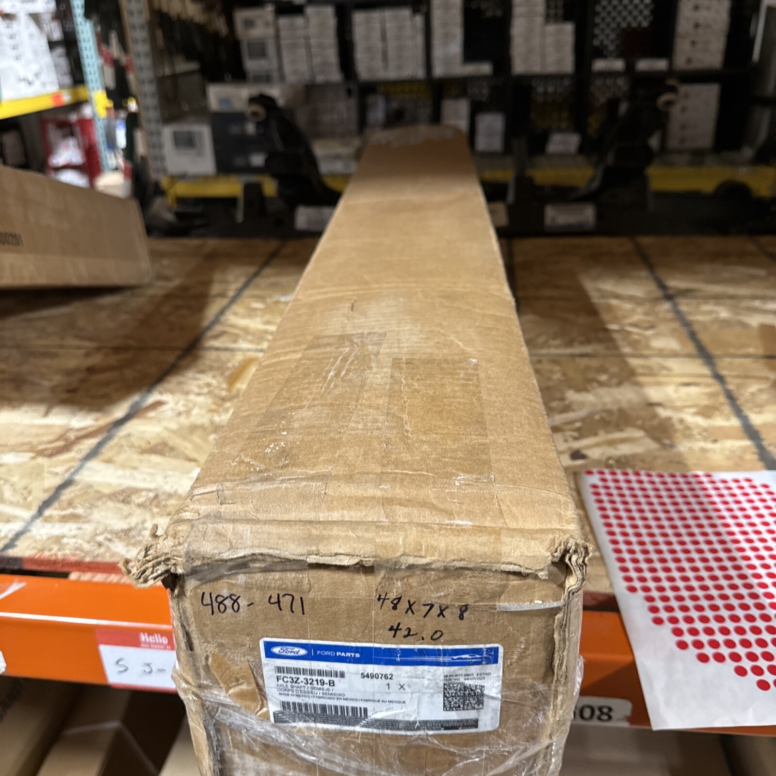The product is a new genuine front axle shaft made by Ford with part number FC3Z3219B (also known as FC3Z-3219-B). It is a direct replacement part that is classified as Genuine OEM, ensuring high quality and compatibility with Ford vehicles. This front axle shaft is designed to be placed at the front of the vehicle and is a crucial component of the transmission and drivetrain system. It is a reliable and authentic part that meets the standards set by Ford for optimal performance.