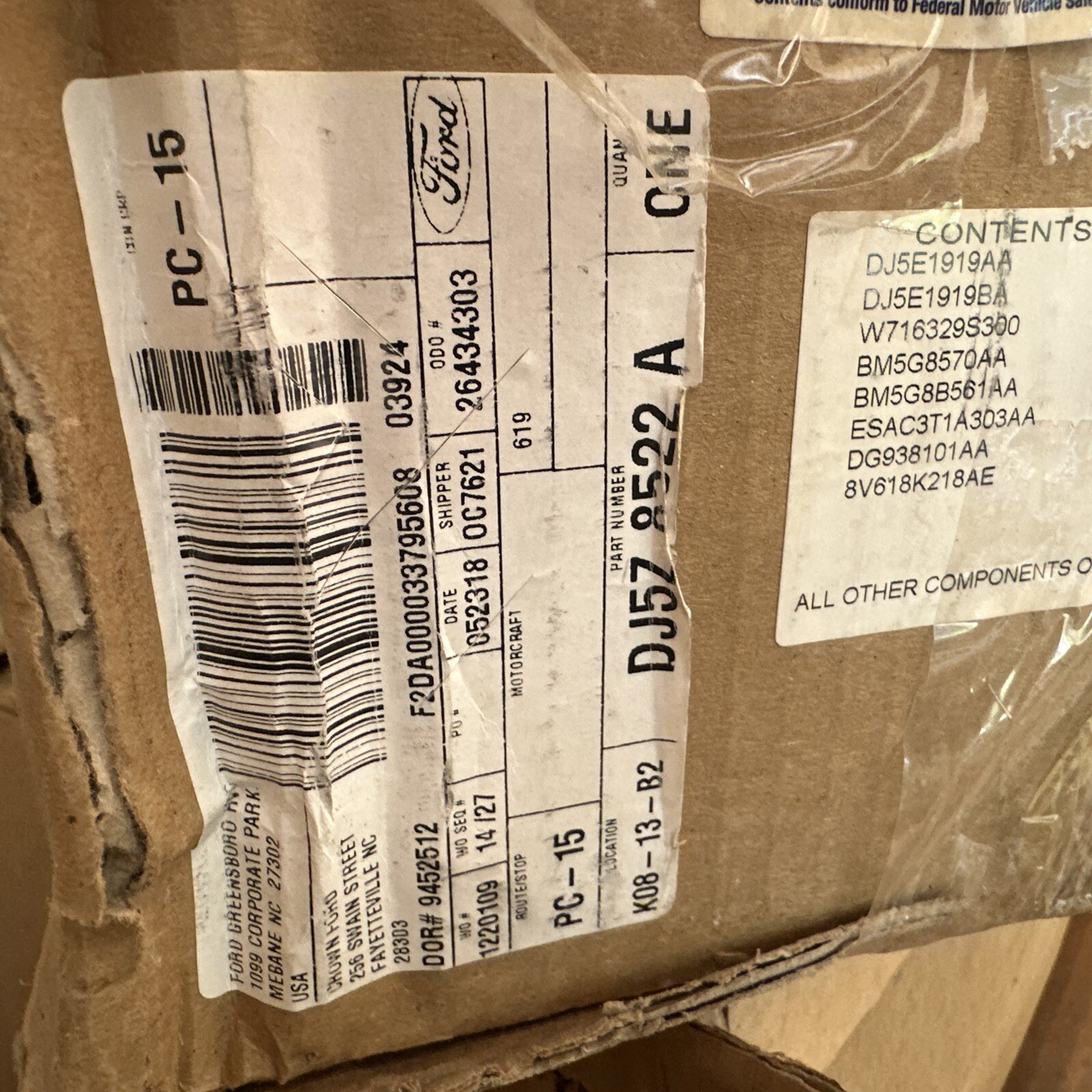 New Genuine Ford Kit DJ5Z8522A / DJ5Z-8522-A OEM Nos