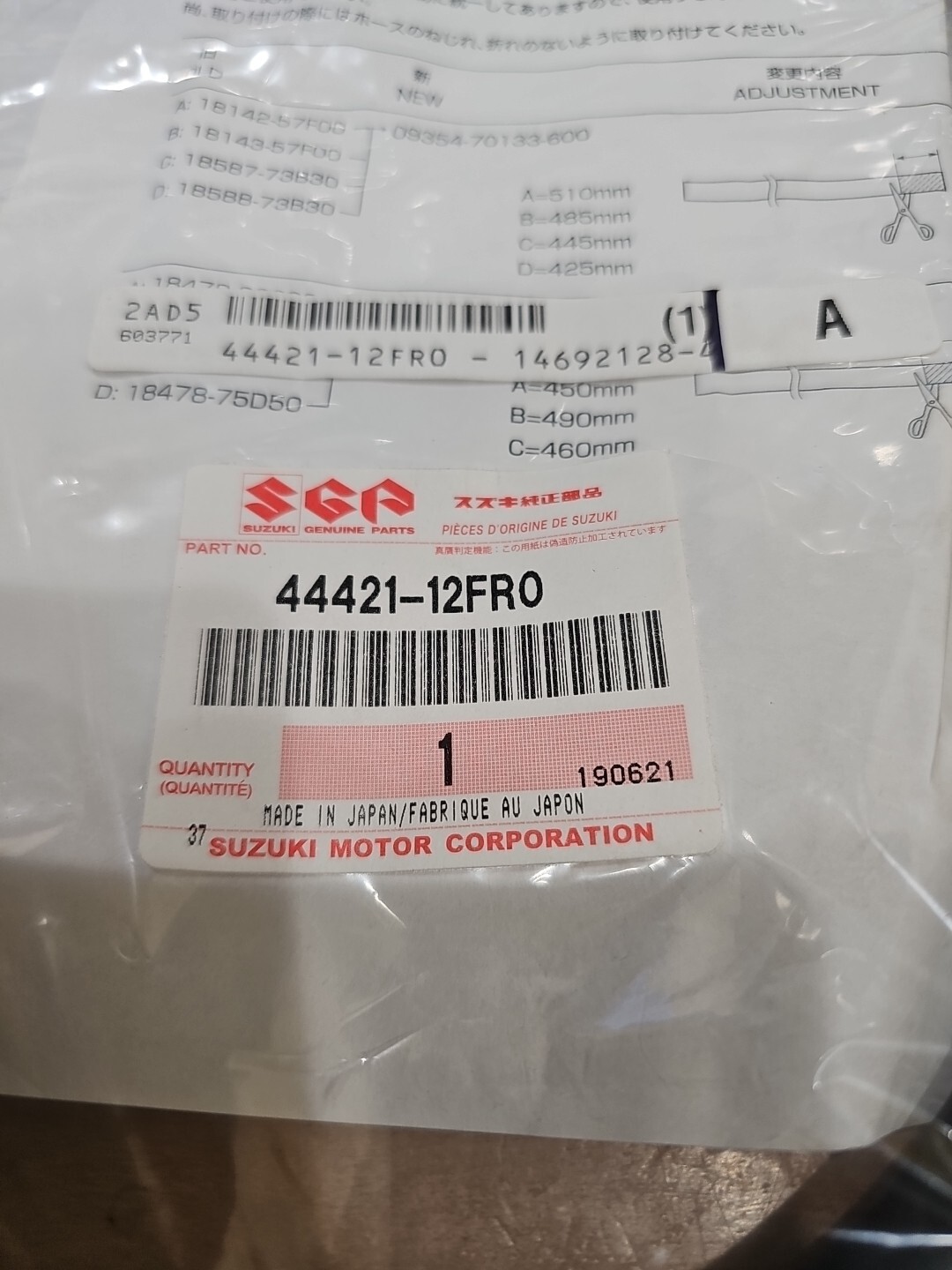 The product is a New Genuine Suzuki Fuel Hose with dimensions of 6.5×11.5×6, designed for various Suzuki motorcycle models including the DR, VL, and Katana. The part number for this Fuel Hose is 44421-12FR0, which is an OE/OEM part manufactured by Suzuki. It also comes with superseded part numbers 09354-70133-600 and 09355-70125-600, indicating compatibility with older models. This Fuel Hose is specifically designed for the pump line of the motorcycle’s air intake and fuel delivery system.