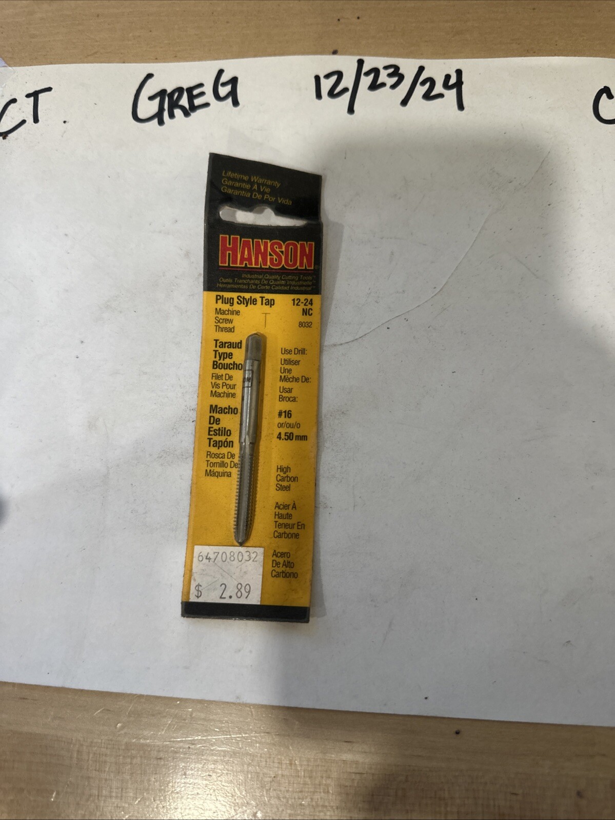 The product is a Hanson #16 4.5mm Taper Pipe Tap designed for cutting and cleaning 12-24 NC threads. It is a single item with a manufacturer part number of 8032, made in the United States. The tap is suitable for automotive or general hand tool use, and does not come with a warranty. This tapered pipe tap is a high-quality tool for precision thread cutting tasks.