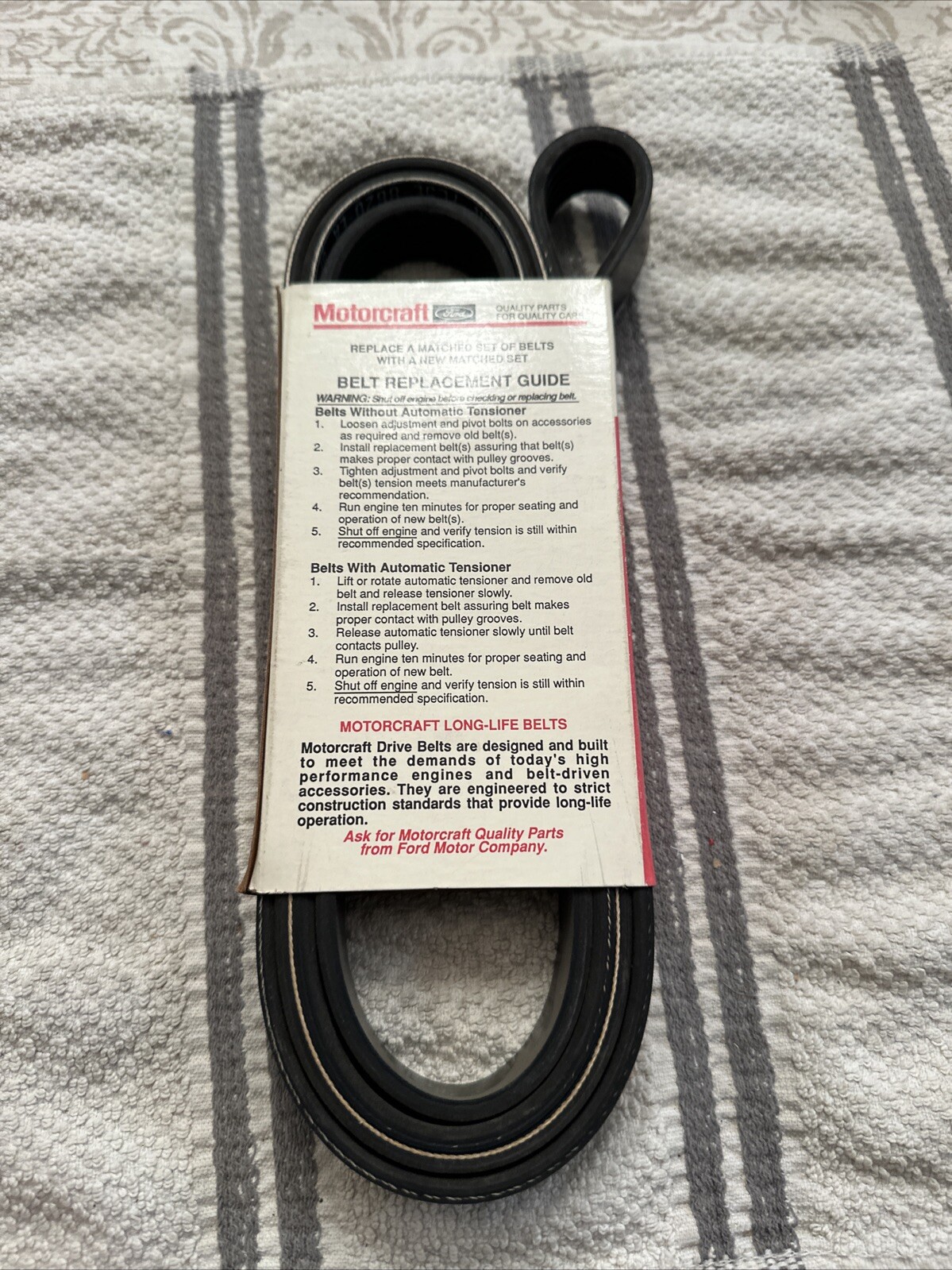 This Motorcraft Serpentine Drive Belt is a high-quality replacement part for your Ford Ranger 4.0L between 2001-2011. It is designed to fit directly with the engine, fan, and accessory drive, ensuring optimal performance and reliability. The belt is made by Motorcraft, a trusted brand in the automotive industry, and is compatible with various part numbers including BANDO 6PK2205, CONTINENTAL 4060865, and DAYCO 5060868DR.