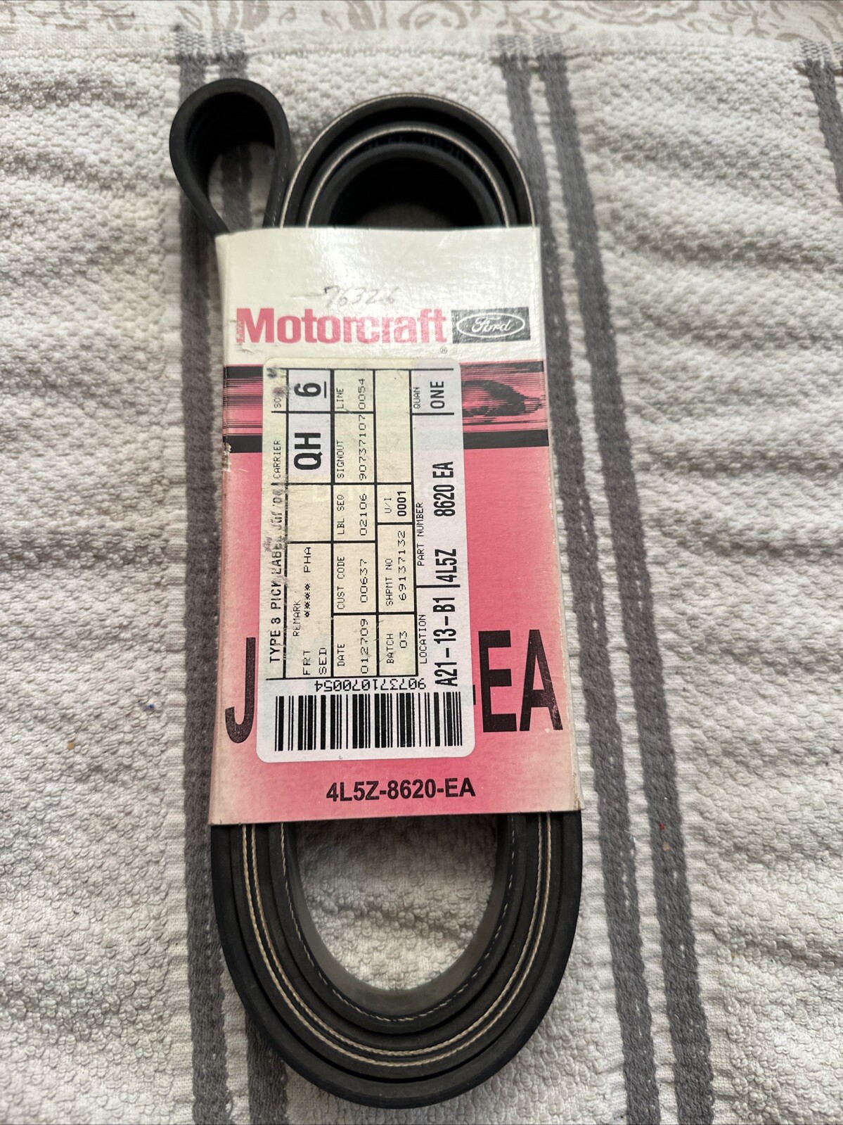 The OE/OEM Part Number for this belt is JK6-873-EA and it is a direct replacement fitment type. The manufacturer part number is OEM Ford, 4L5Z-8620-EA. This belt is perfect for those looking to replace their old or damaged serpentine drive belt, ensuring their Ford Ranger runs smoothly and efficiently.