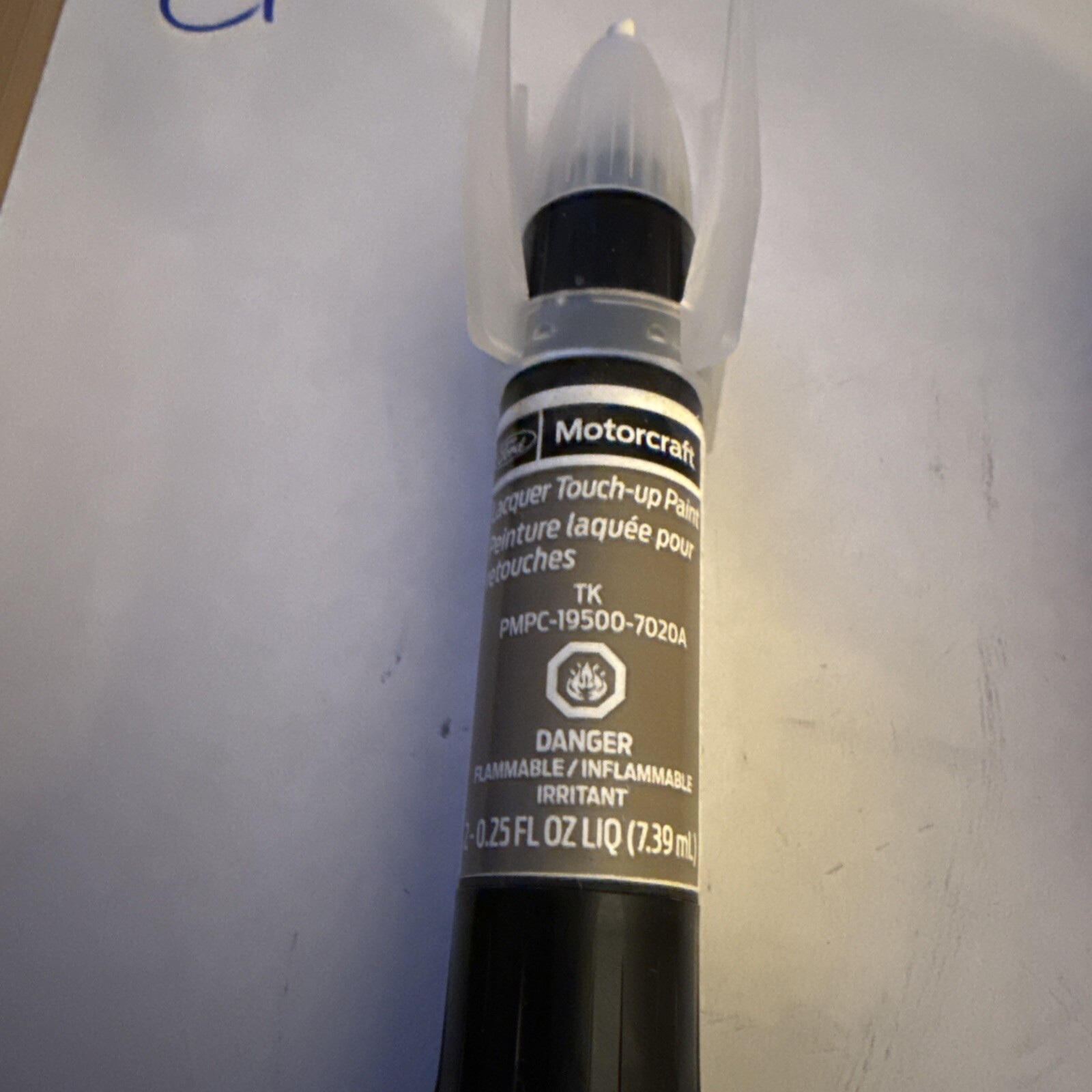 This is a new Motorcraft Touch Up Paint Pen in Mineral Gray color. The paint pen is designed for easy application and is perfect for touch-ups on your car. The pen is formulated with a base coat paint type and is compatible with the paint code TK.