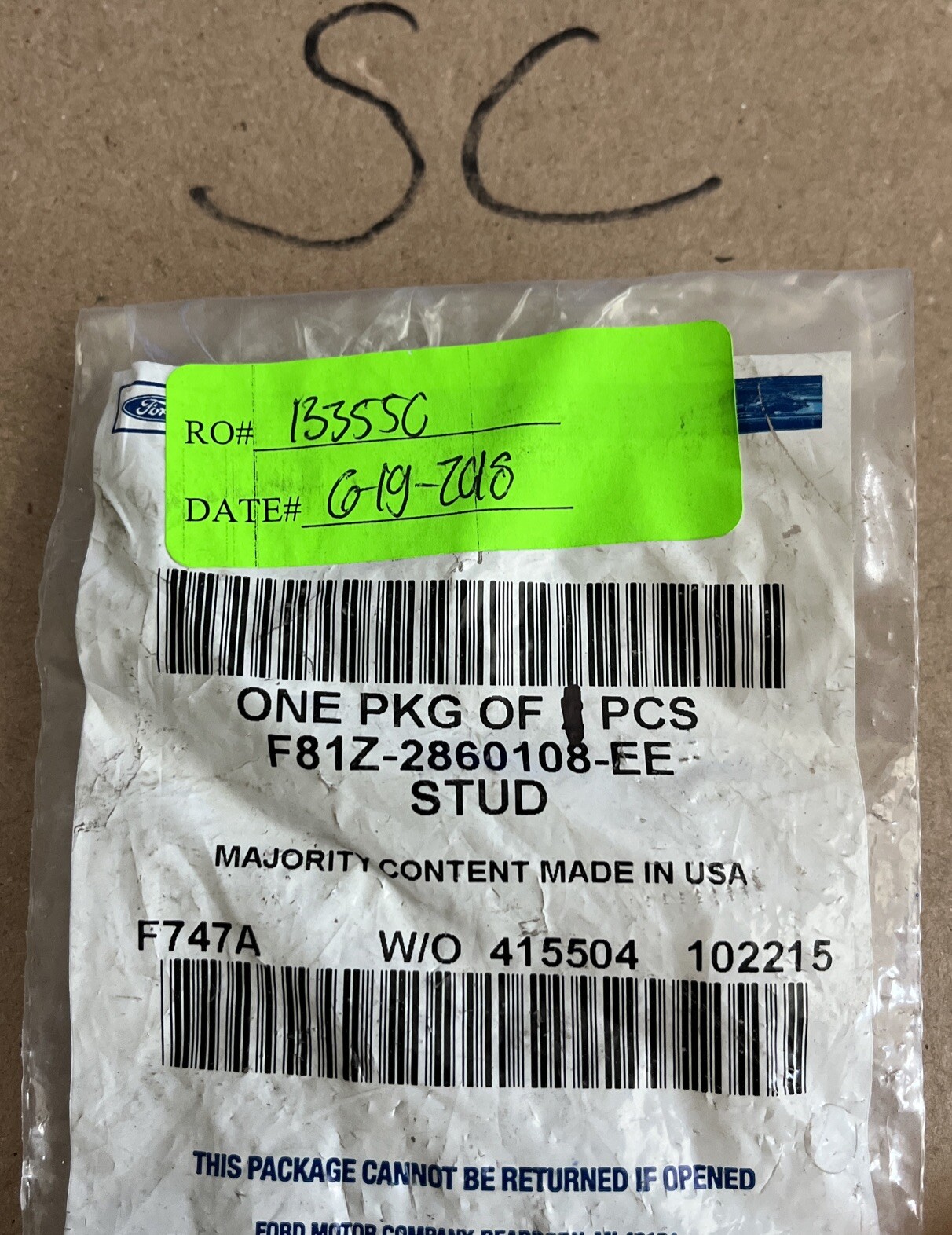 New OEM Ford F81Z-2860108-EE Stud NOS- 1 Piece