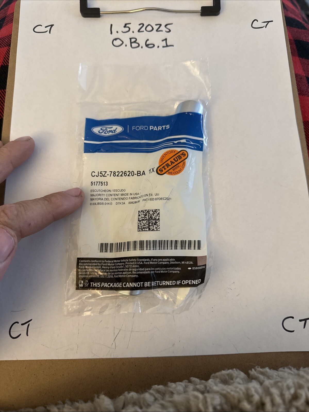 This is a genuine OEM Ford front right-hand door molding in satin chrome finish, designed for the Ford Escape and C-Max models from 2013 to 2019. The molding, with the manufacturer part number CJ5Z-7822620-BA, is a direct replacement made of plastic. It is specifically crafted to fit on the front right side of the vehicle's door, enhancing its appearance with a sleek satin chrome trim. The interchange part numbers include "Trim" and "Escutcheon, Panel, Passenger Side," ensuring compatibility and correct placement on the vehicle.