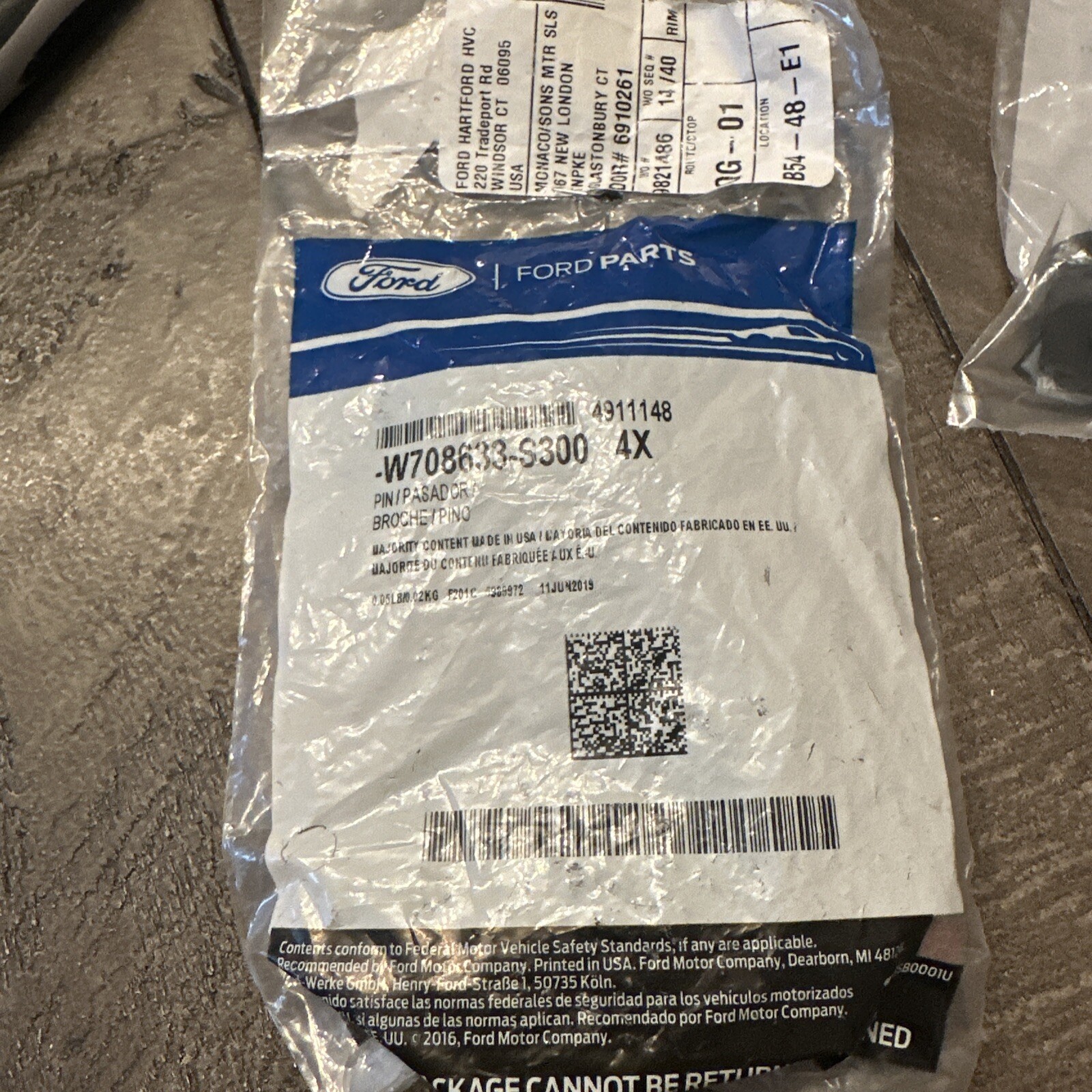 This is a brand new, genuine OEM Ford part with part number W708633S300. It is a liner retainer/pin that is designed for use in various Ford vehicles. The part is not vintage and is in excellent condition.