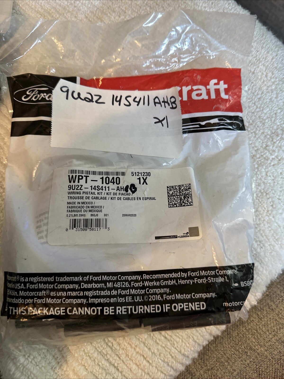 This Transfer Case Control Module Connector Wire (Part No. 9U2Z-14S411-AHB) is designed to fit Ford vehicles and is a superseded part for WPT-1040-. The certification of this product is genuine OEM and is a perfect fit for your Ford vehicle. Buy this Pigtail Wire Assembly now and keep your Ford running smoothly without worrying about your old and damaged wire assembly.