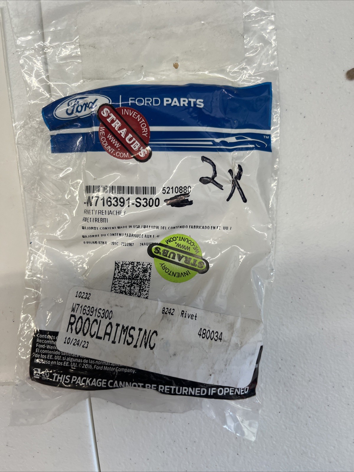 New OEM Genuine Ford W716391-S300, 5210880 Deflector Rivets Qty 2 NOS