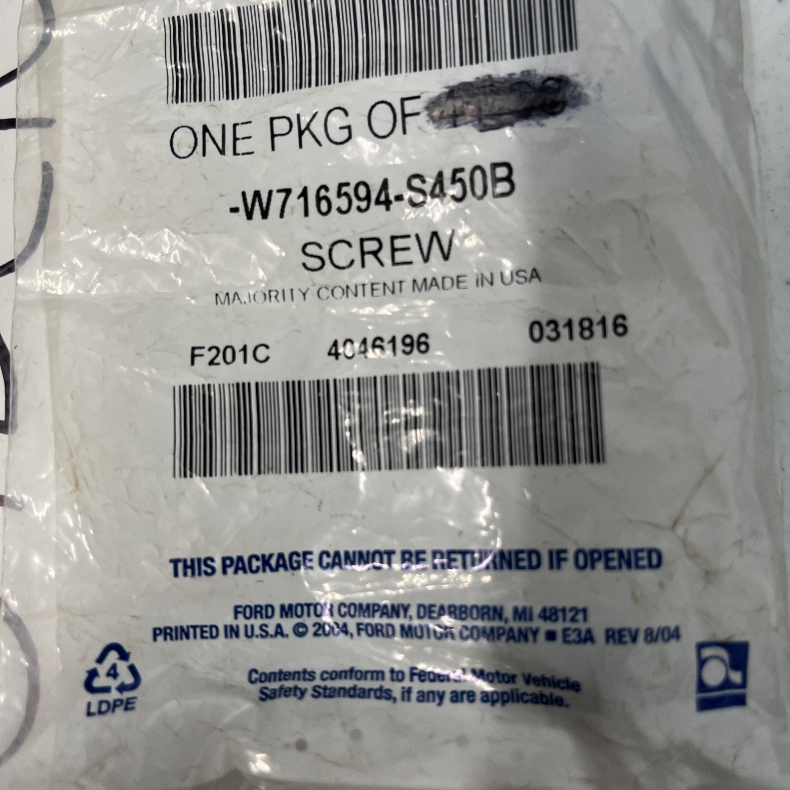 New OEM Genuine Ford W716594-S450B Applique Screw NOS