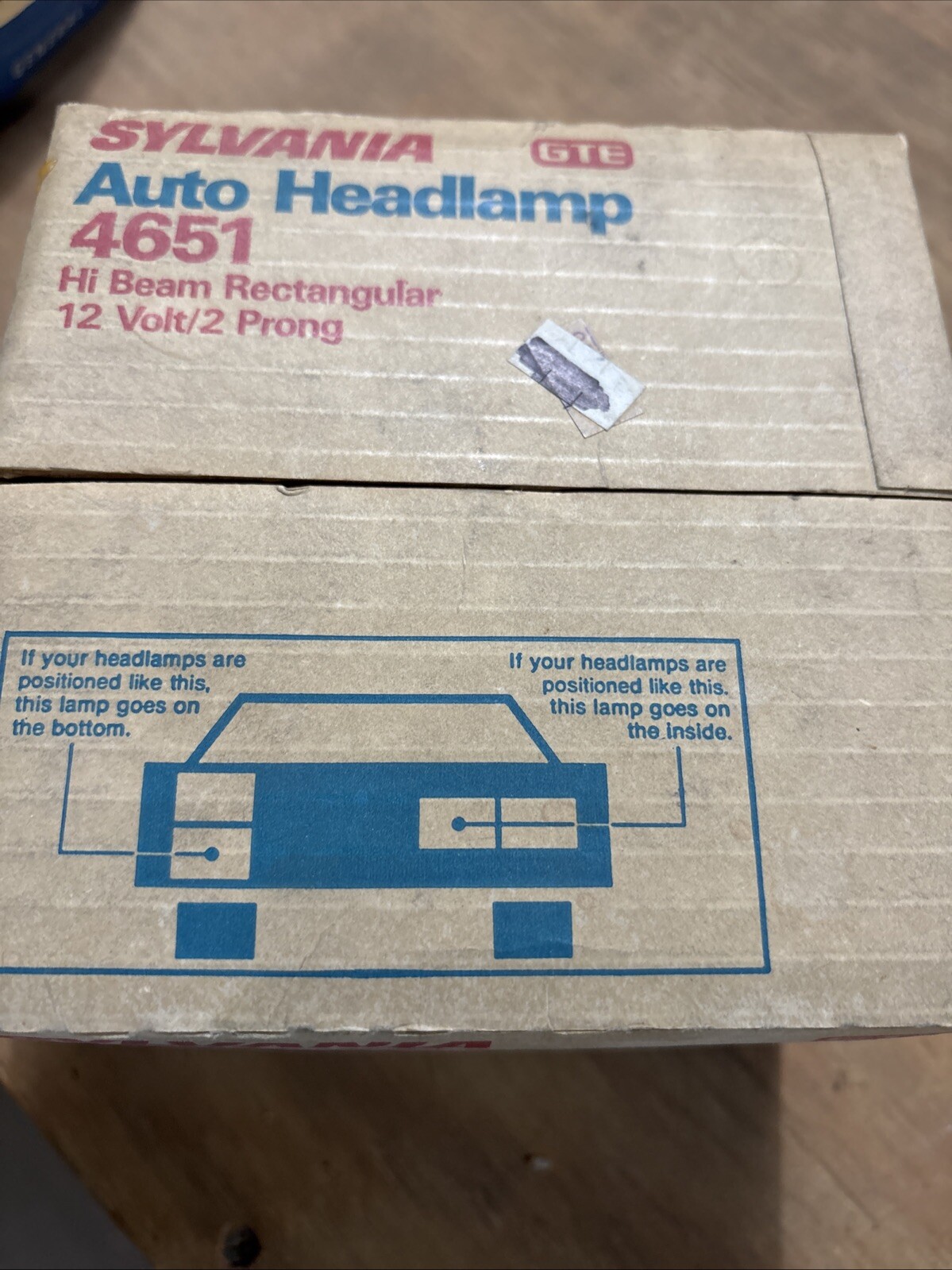 New Old Stock Sylvania 4651 High Hi Beam Rectangular Headlamp 12V 2 Prong NOS