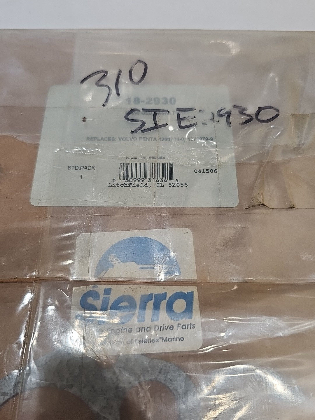 The product is a new Sierra Volvo Penta exhaust manifold gasket with the part number 18-2930, which serves as a replacement for part number 1266796-0. It is designed for use in outboard engines and components, specifically in the cowlings and housings of boats. The brand of the gasket is Sierra, and it is not a custom-made item. The manufacturer part number provided indicates compatibility with Volvo Penta engines, ensuring a proper fit and function in the exhaust system.