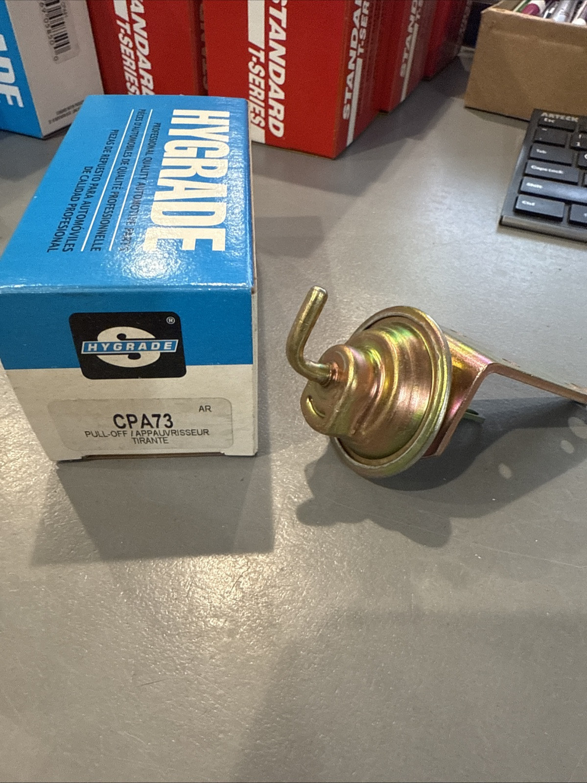 The product is a brand new Choke Pull Off manufactured by Standard Motor Products. The manufacturer part number is CPA-73. This Choke Pull Off is designed to assist in regulating the choke on a carburetor, helping to manage the air and fuel mixture for proper engine performance. It is a genuine SMP product, ensuring quality and compatibility with various car and truck models.