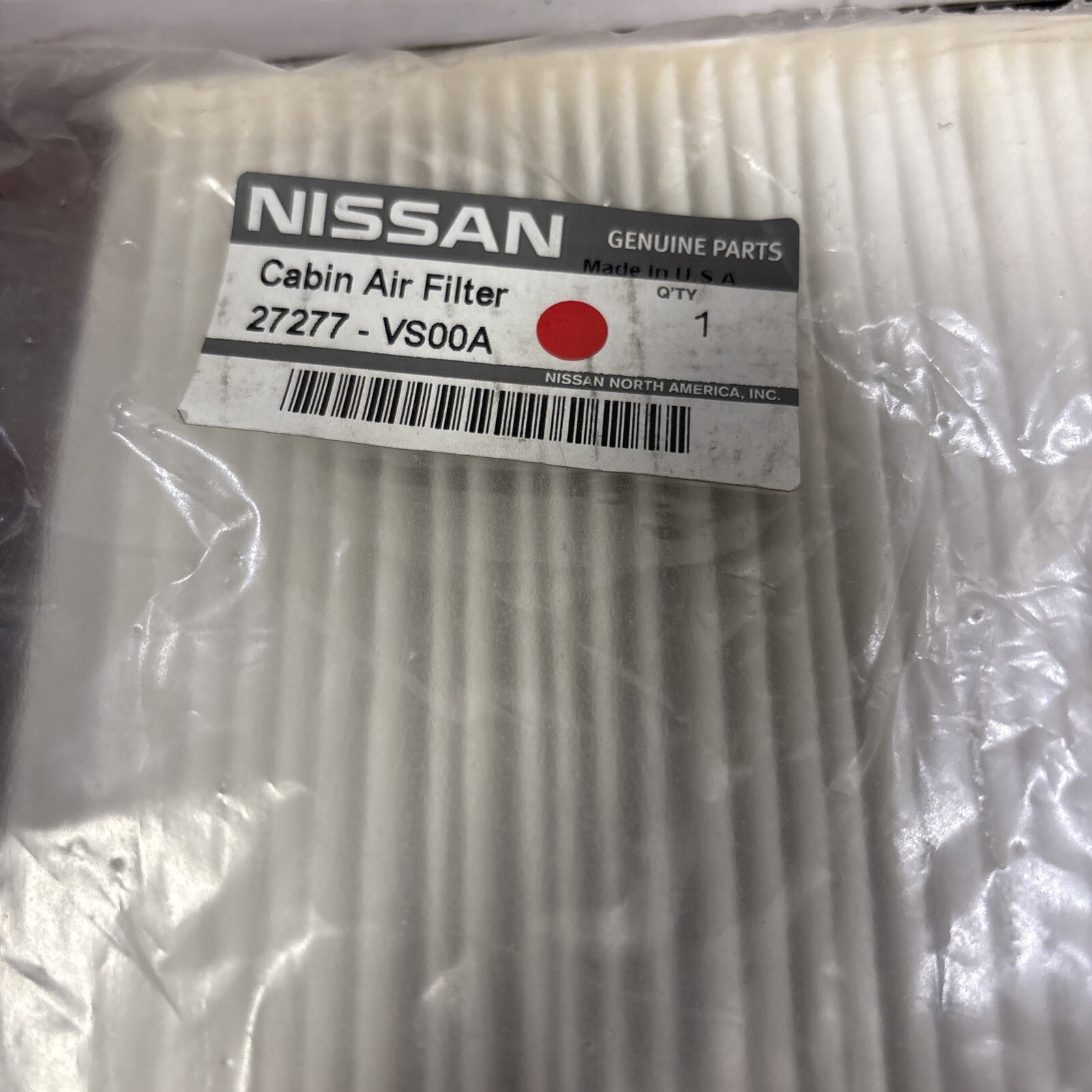 The product is a genuine Nissan cabin air filter with part number 27277-VS00A designed for vehicles made between 2007 and 2013. This air filter is specifically for the cabin of the vehicle, ensuring clean and fresh air inside the car. As it is a genuine Nissan part, it is made to fit and function perfectly with Nissan vehicles, providing optimal air filtration and quality.