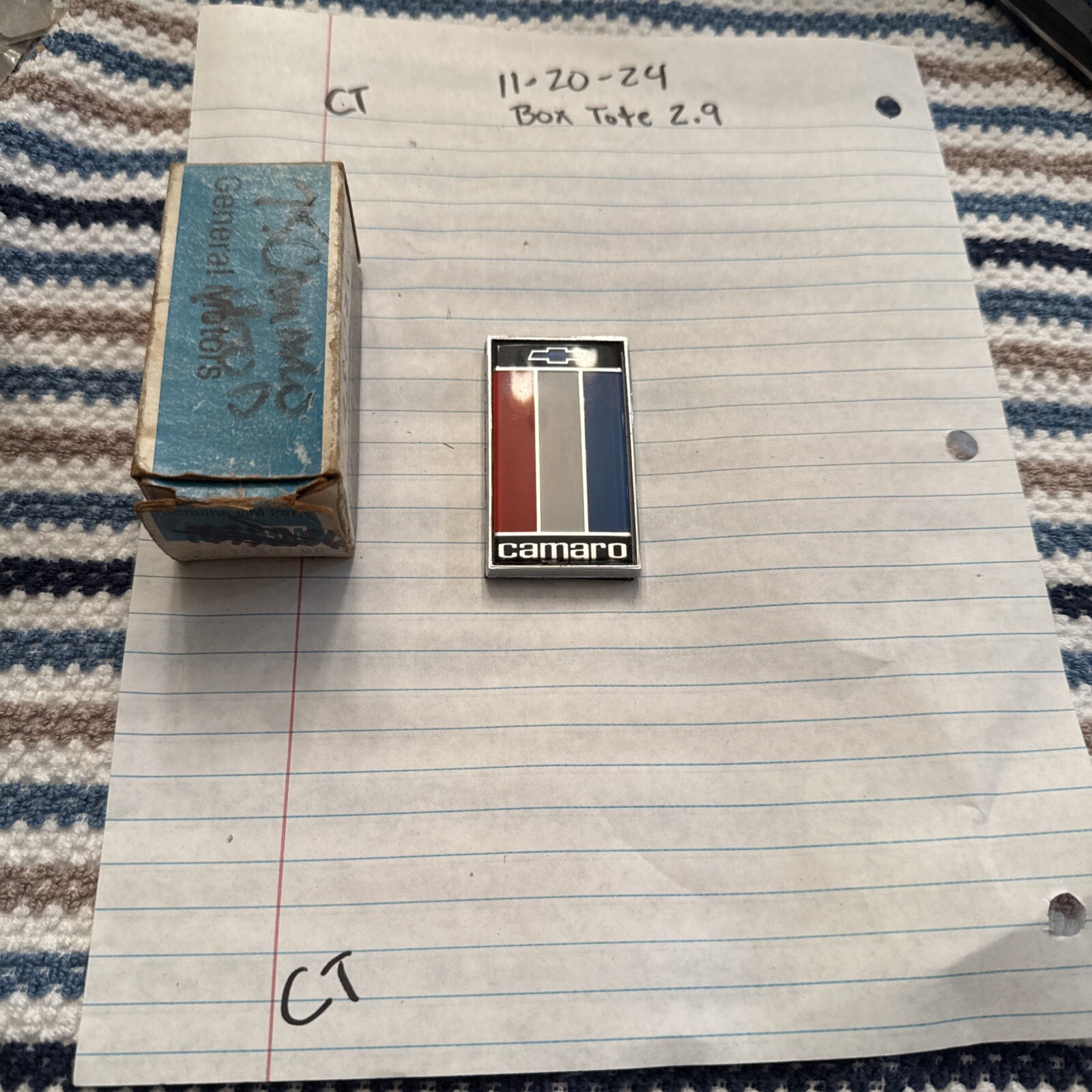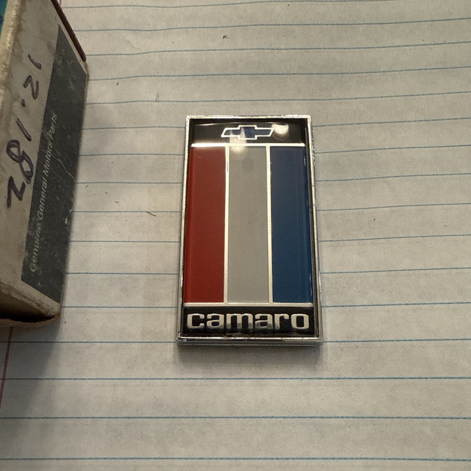 This is a NOS (New Old Stock) emblem for the rear deck trunk of a 1975-77 Chevy Camaro Z/28 RS SS. The emblem is manufactured by General Motors and has the part number 1739100. It is a vintage part made in the United States and is a universal fitment for the Camaro model. This emblem is perfect for car enthusiasts who want to add an authentic piece to their collection.