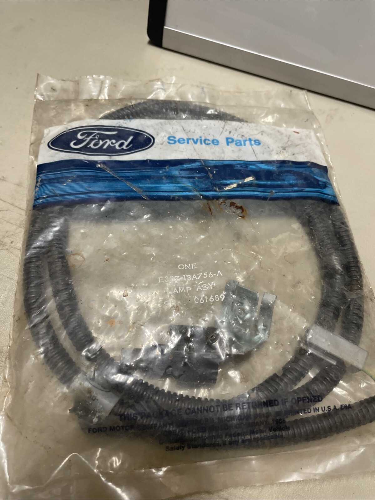 This is a NOS (New Old Stock) trunk lamp assembly for a 1983-1986 Ford Thunderbird. It is a vintage part specifically designed for this car model. The manufacturer part number is E3SZ-13A756-A. This item is perfect for Ford Thunderbird owners who are looking for an original replacement part for their car.