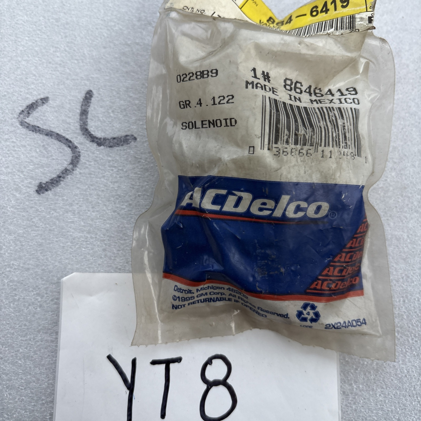 NOS ACDELCO GM GENERAL MOTORS SOLENOID VALVE PART NO. 8646419 OEM