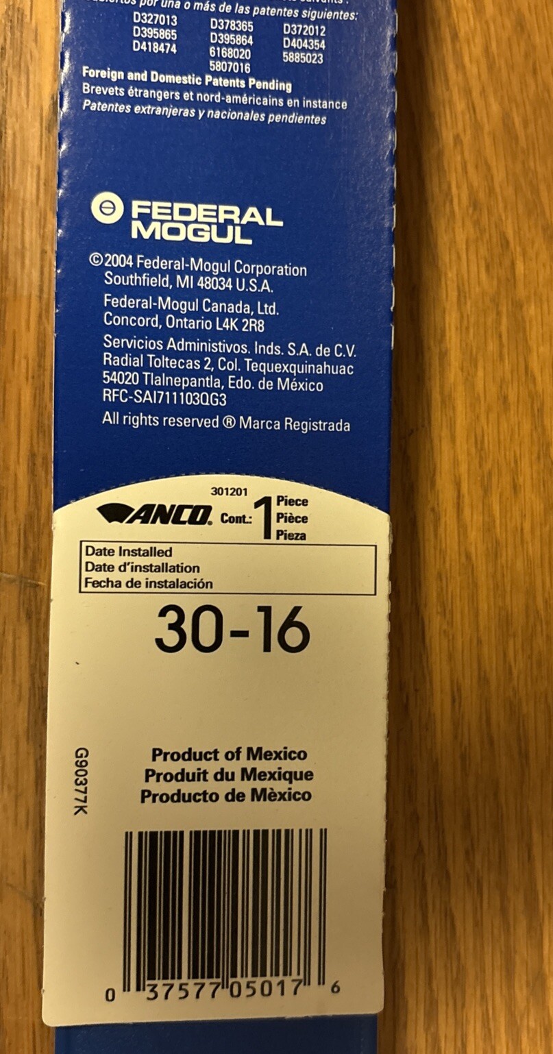 NOS ANCO 30-16 Premium Winter Metal Windshield Wiper Blade – 16" 406MM