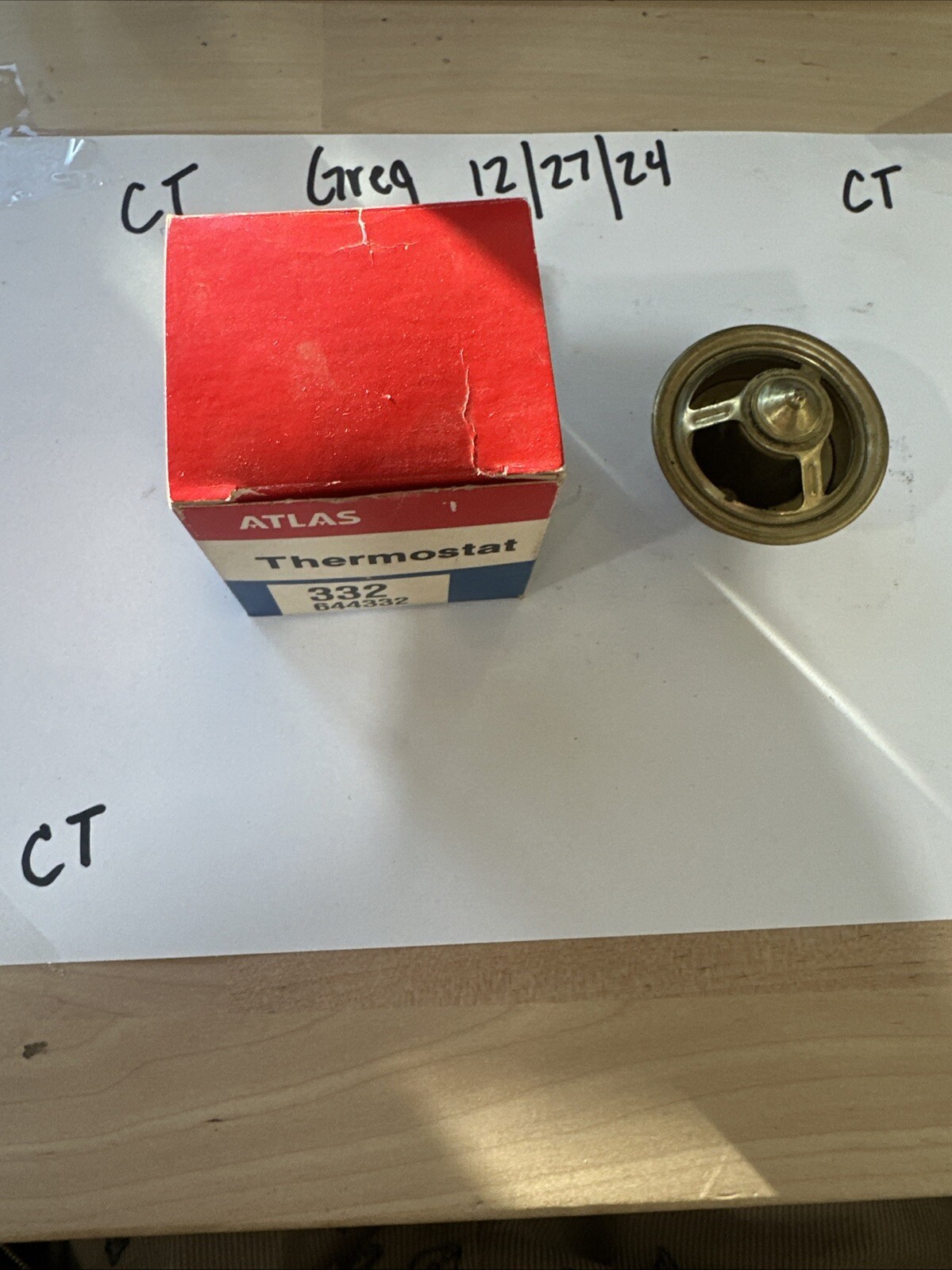 This is a NOS (New Old Stock) Atlas 332 Heavy Duty Thermostat Assembly with a Manufacturer Part Number of 644332. It has an Opening Temperature of 332 degrees Fahrenheit and is designed for heavy-duty applications. The thermostat is made in the United States and is a reliable replacement part for engine cooling systems. It is compatible with various vehicles and is interchangeably part number 33058. This genuine Atlas thermostat ensures proper engine temperature regulation for optimal performance and longevity.