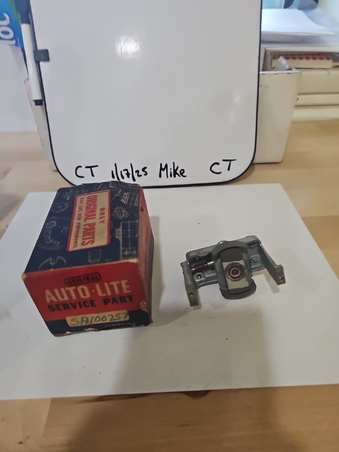 The product is a NOS Autolite Frame & Rotor Speedometer Assembly with the manufacturer part number SA100257. This vintage part is made in the United States and is designed by the brand Autolite. It includes both the frame and rotor components for a speedometer assembly, making it a crucial part for tracking the speed of a vehicle. This genuine Auto Lite product is a rare find for collectors or individuals in need of authentic replacement parts for their car or truck.