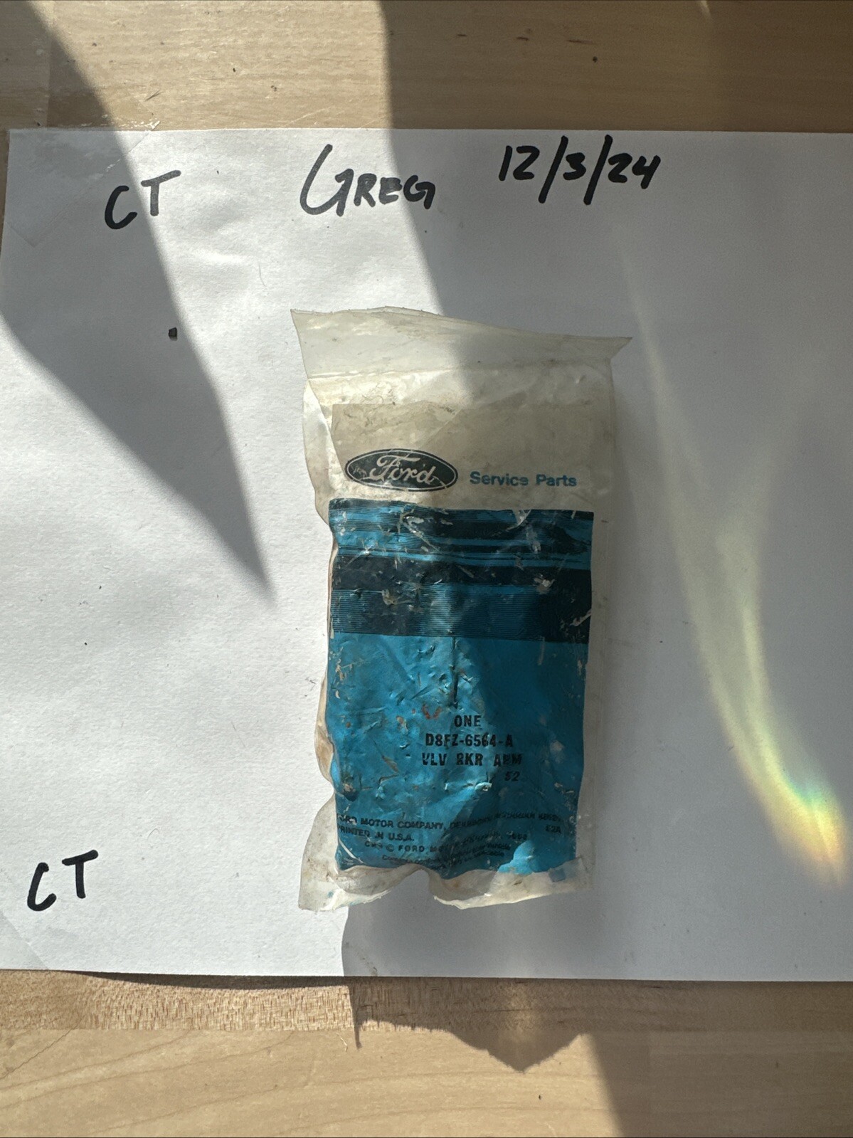 This is a NOS (New Old Stock) Ford arm valve rocker with part number D8FZ-6564-A. It is a genuine Ford part and is brand new in its original packaging. This item is perfect for Ford enthusiasts or collectors looking for replacement parts or to complete their restoration project. See the picture provided for more details on the item's appearance and feel free to ask any questions you may have.