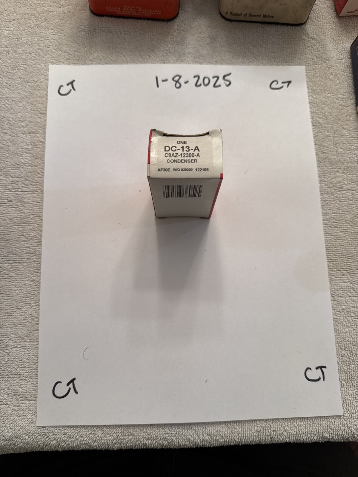 The product is a NOS (New Old Stock) Ford ignition condenser with the engineering name "Distributor Condenser." It is specifically designed for vintage Ford models such as BOSS 302, 351, 429, 428, and 390, including Mustangs from 1968, 1969, and 1970. The condenser has various other part numbers such as DC13A, C9AZ12300A, and F1598, with the Manufacturer Part Number C9AZ-12300A and OE/OEM Part Number DC-13A. This United States-manufactured part is a genuine Ford product for ignition systems and components.