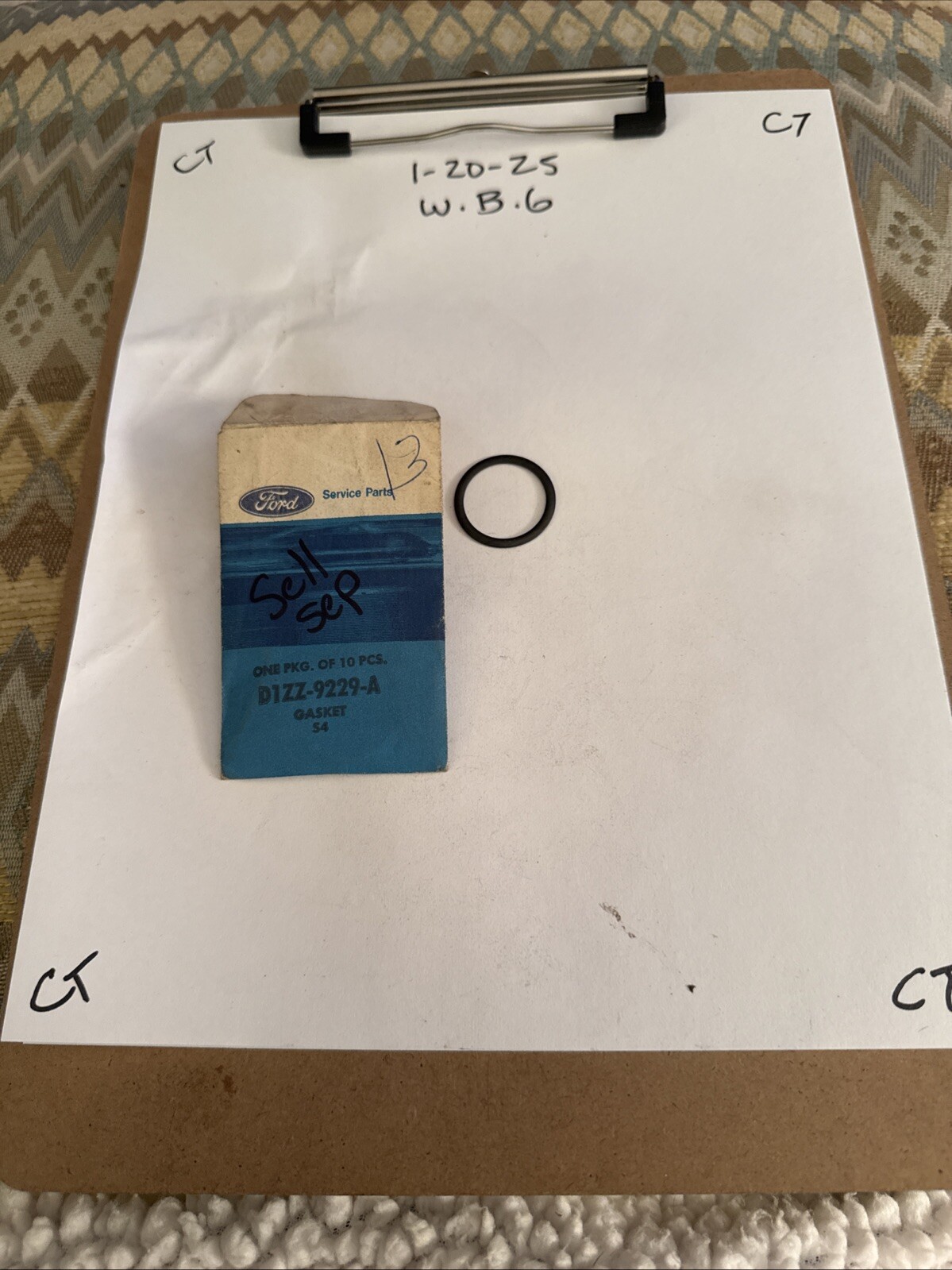 This is a NOS Ford fuel filter gasket with part number D1ZZ-9229-A, suitable for use in 1969-1971 Mustang Boss 302 and 429CJ vehicles. It is an OEM part manufactured by Ford and includes a gasket.