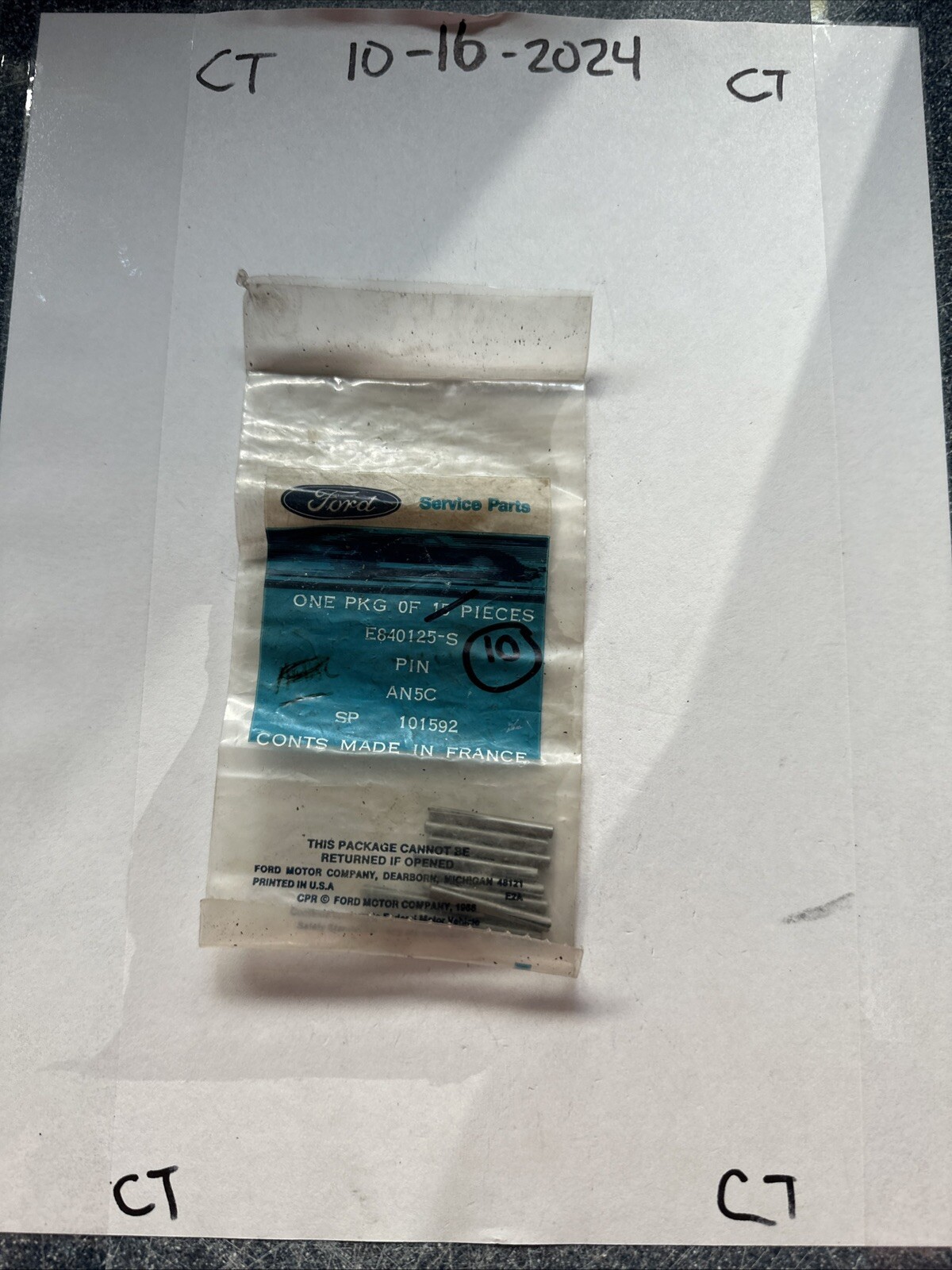 This lot of 10 genuine Ford parts with part number E840125-S is a must-have for any Ford enthusiast. These parts are made to fit perfectly and provide optimal performance for your vehicle. The brand of the parts is Ford, ensuring that you get the best quality for your money.