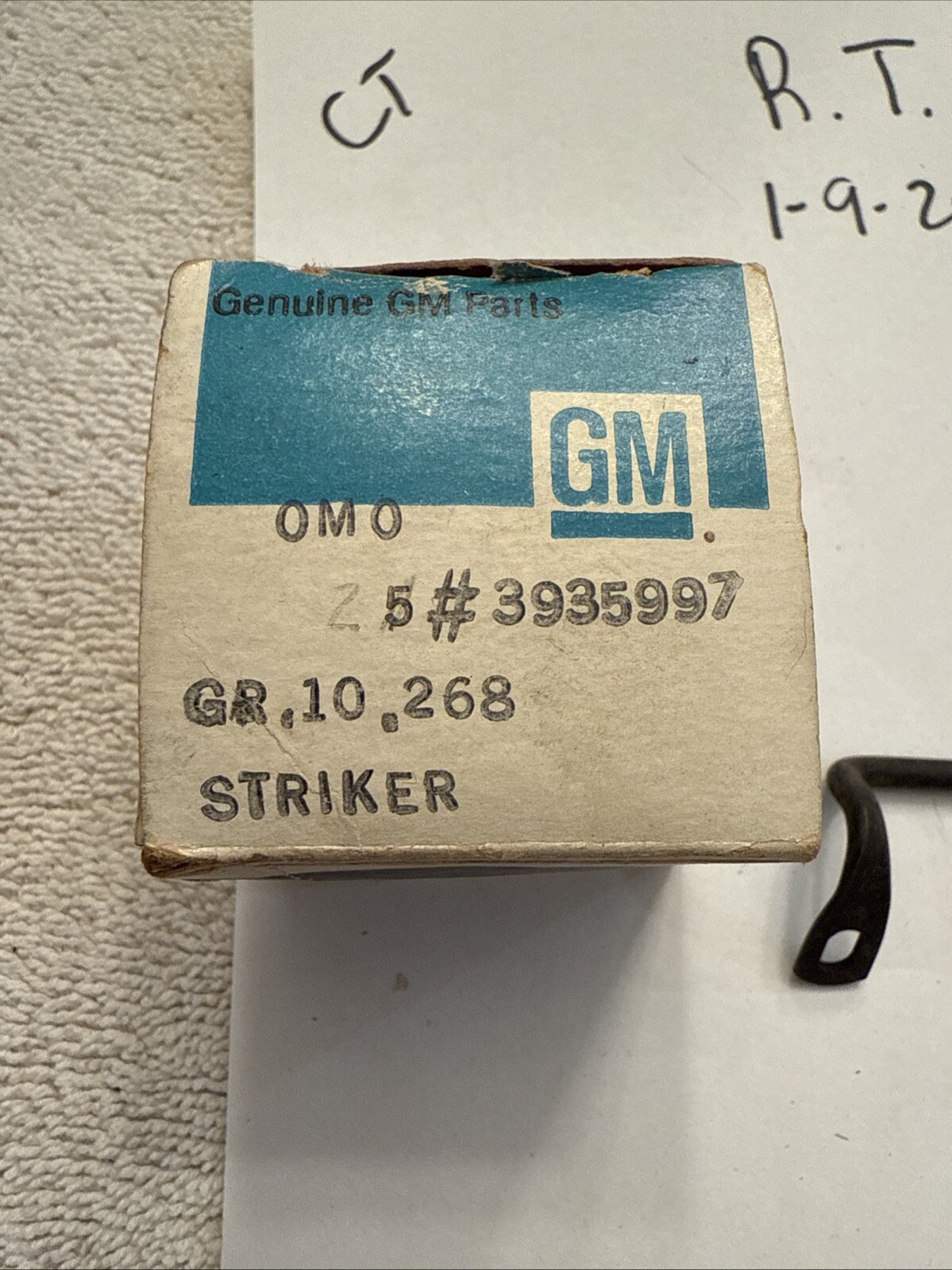 This is a vintage NOS GM glove box door striker with the OE/OEM Part Number 3935997, designed for 1969-1970 Chevy full-size vehicles. The black latch is a genuine General Motors part manufactured in the United States, making it a high-quality replacement for original glove box components. With its specific fitment for Chevy full-size models from that era, this glove box door striker ensures a secure closure for the glove box compartment, adding authenticity to classic vehicle restorations.