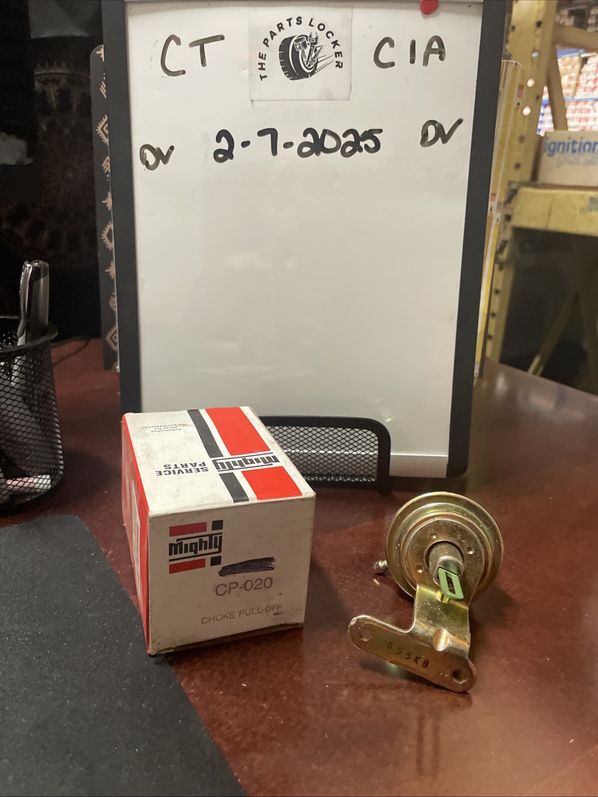 The product is a NOS (New Old Stock) Mighty CP-020 Carburator Choke Pull-Off. It is a choke pull-off designed for a carburetor, specifically manufactured by Mighty. The brand of the choke pull-off is Mighty, with the manufacturer part number being CP020. This choke pull-off is designed to assist in regulating the choke operation of a carburetor, ensuring proper functioning for optimal air and fuel delivery in a car or truck engine.